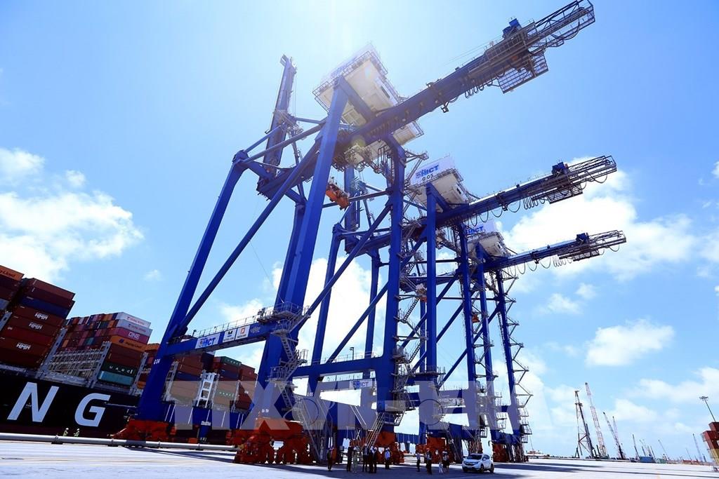 Hệ thống cần trục giàn hiện đại tại Tân Cảng, Lạch Huyện có khả năng bốc dỡ khối lượng lớn hàng hóa. Ảnh: Tuấn Anh - TTXVN