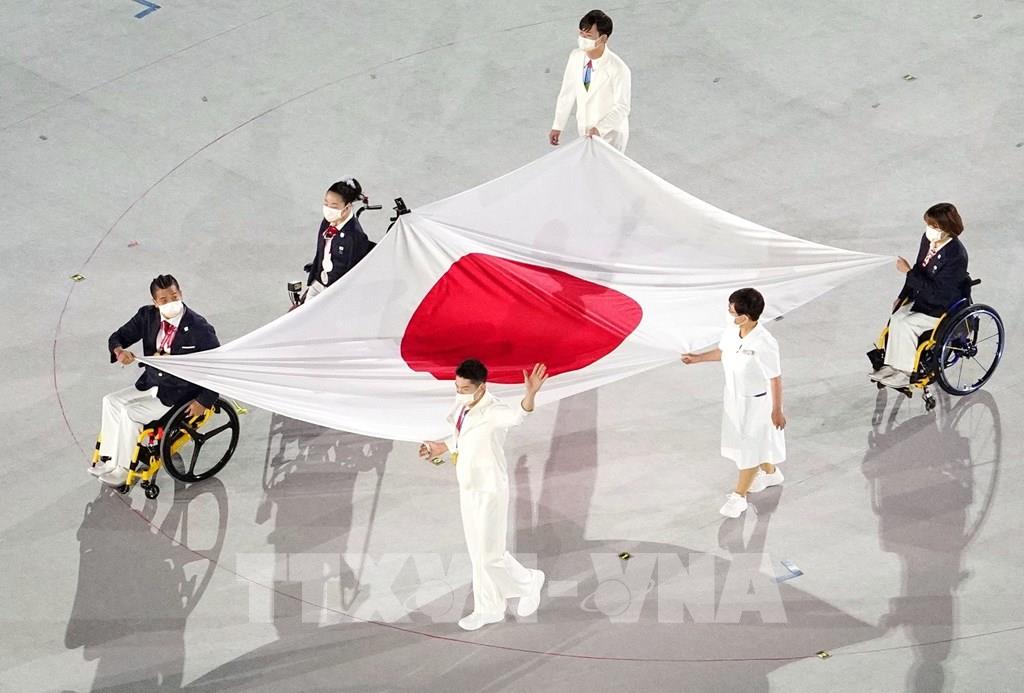 Các vận động viên rước quốc kỳ Nhật Bản tại lễ bế mạc Paralympic Tokyo 2020 ở Tokyo, Nhật Bản ngày 5/9/2021. Ảnh: Kyodo/TTXVN