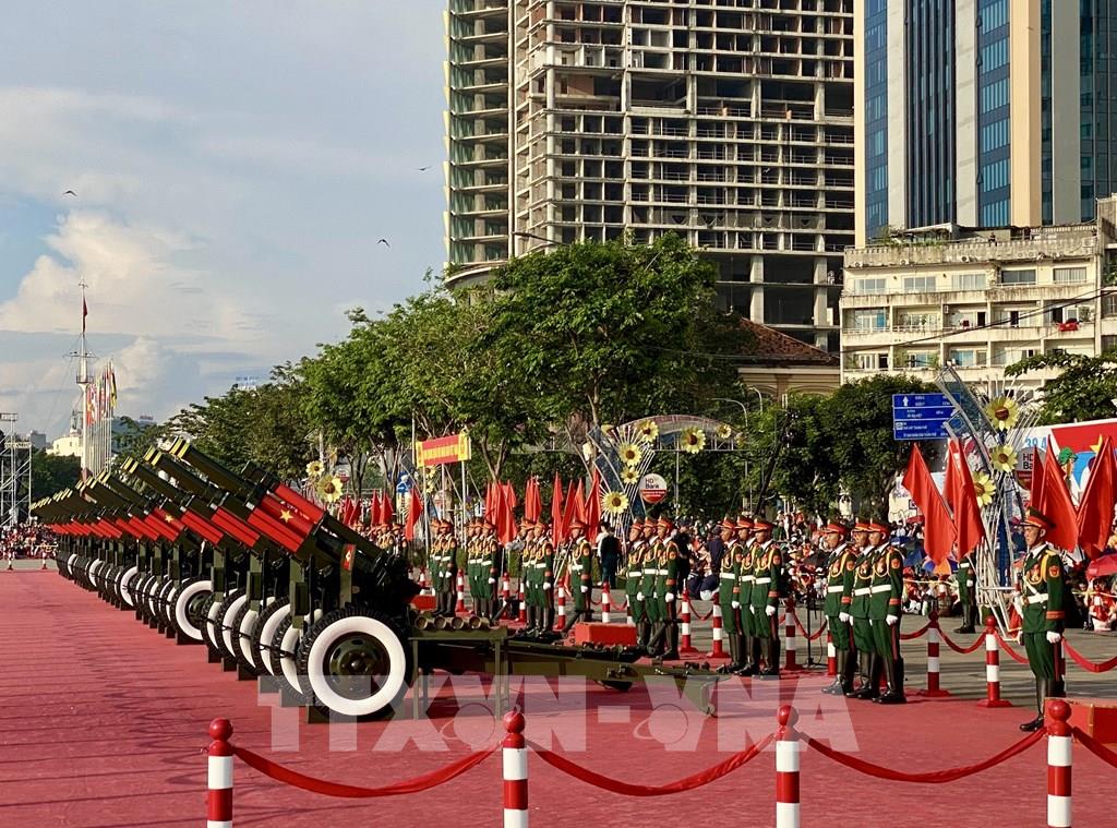 Nghi thức diễu binh, diễu hành tại lễ Tổng duyệt kỷ niệm 50 năm Ngày Giải phóng miền Nam thống nhất đất nước. Ảnh: Thanh Vũ-TTXVN