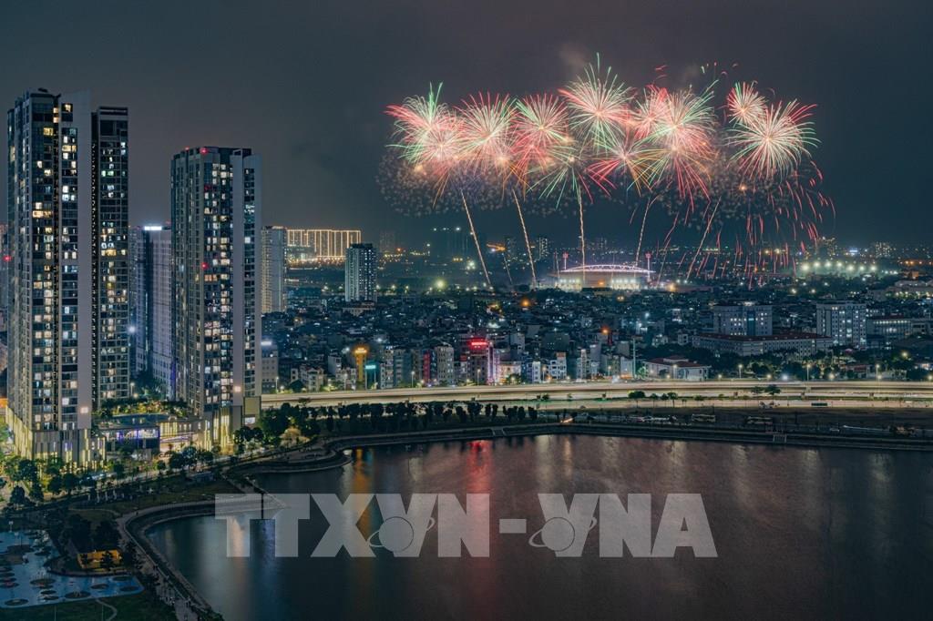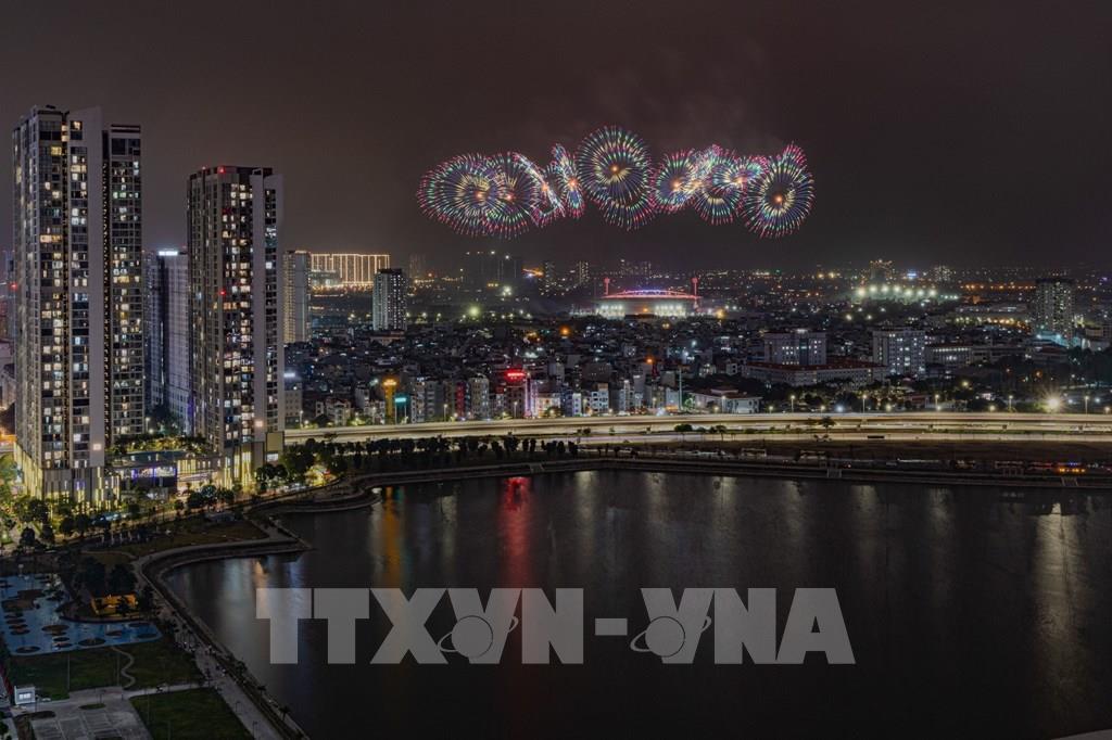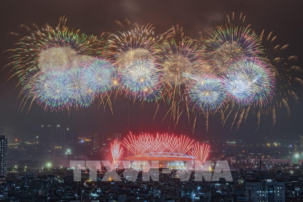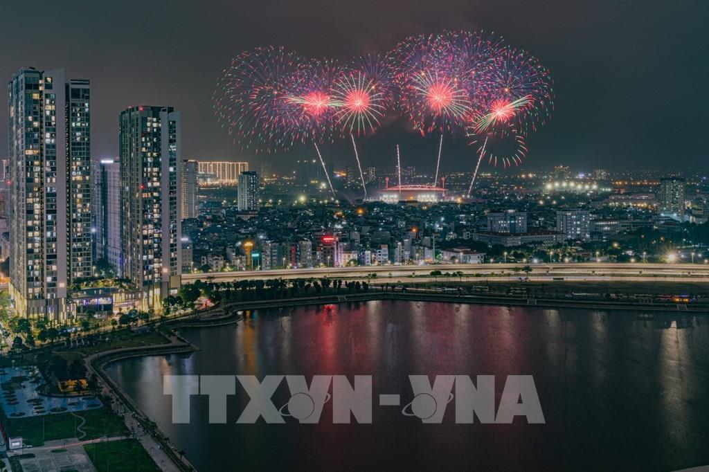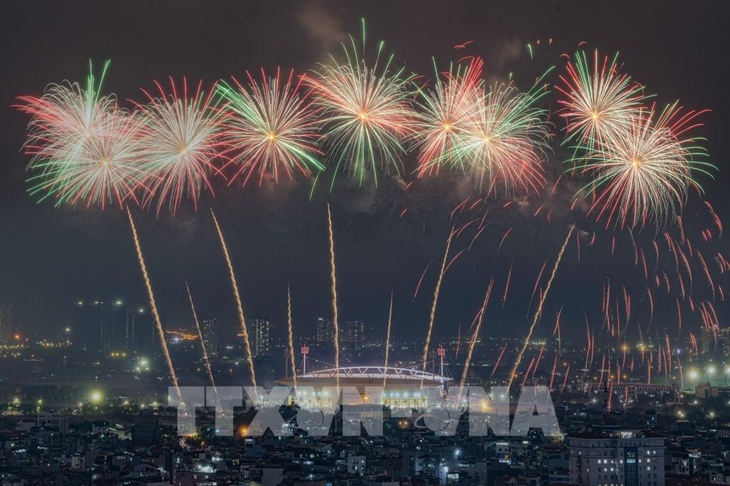 Màn pháo hoa tổng duyệt bắn pháo hoa chào mừng Đại hội đại biểu toàn quốc lần thứ XIV của Đảng. Ảnh: Phạm Tuấn Anh - TTXVN