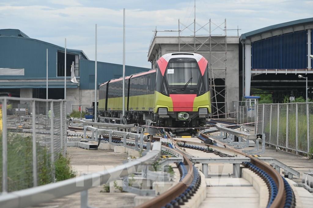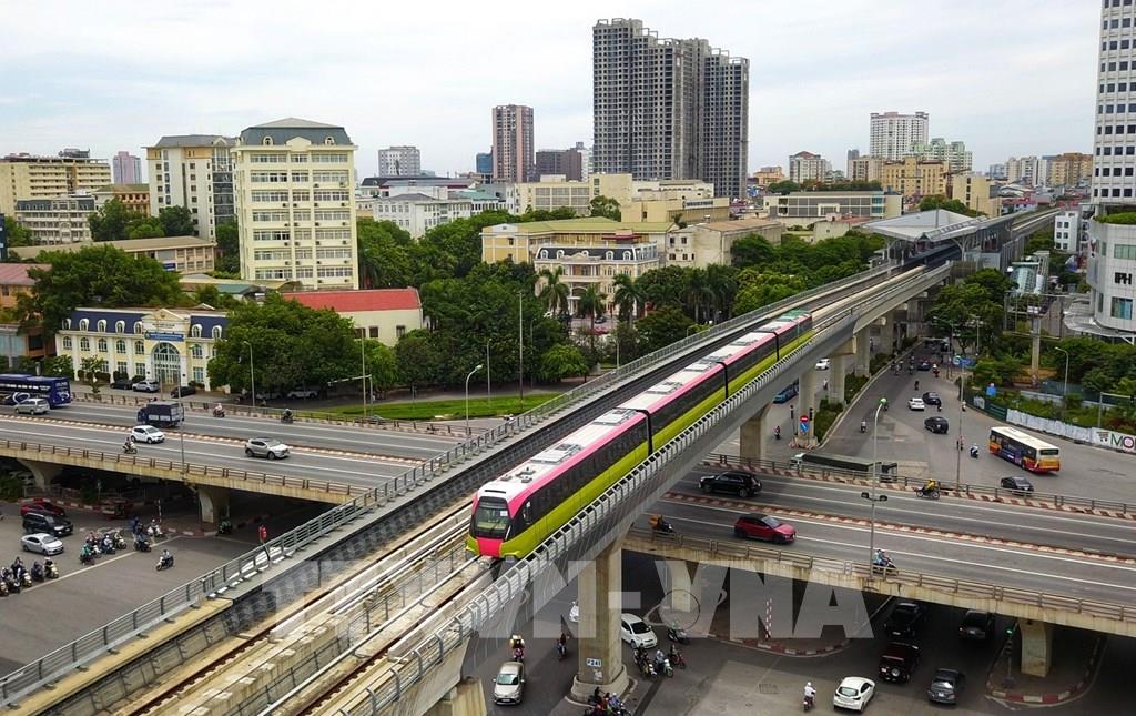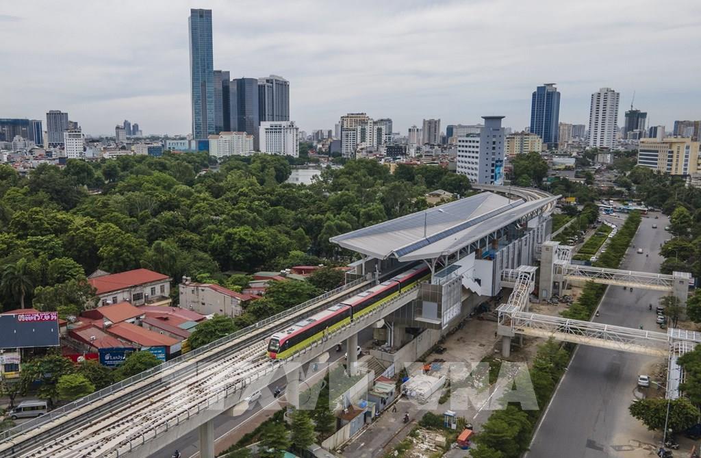 ; Ngày 1/7/2021, Ban quản lý đường sắt đô thị Hà Nội tiến hành chạy thử nghiệm liên động các đoàn tàu dọc tuyến đường trên cao dài 8,5km từ Depot Nhổn đến Ga S8 (Đại học Giao thông vận tải). Trong giai đoạn này các đoàn tàu sẽ được vận hành theo từng chế độ vận hành khác nhau, sau khi hoàn thành thử nghiệm liên động, dự án sẽ chuyển sang giai đoạn kiểm tra chạy thử. Ảnh: TTXVN