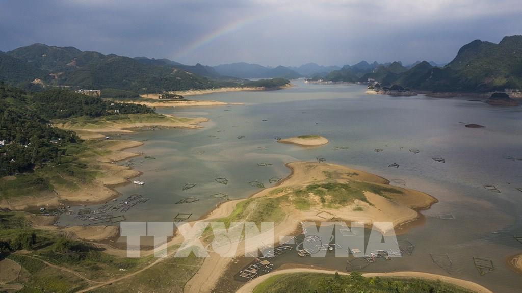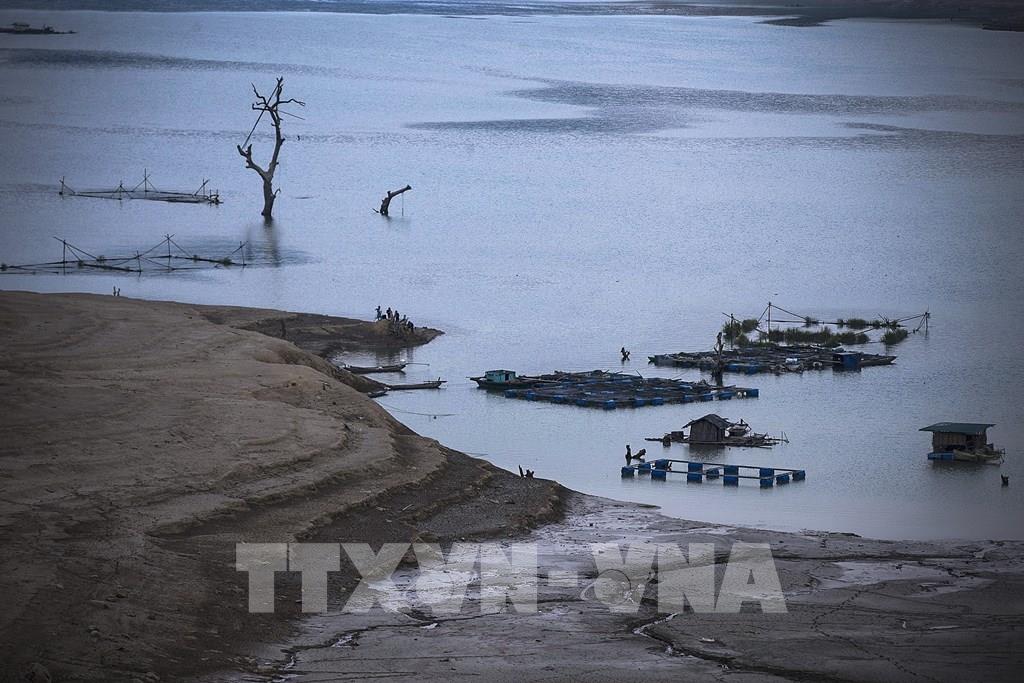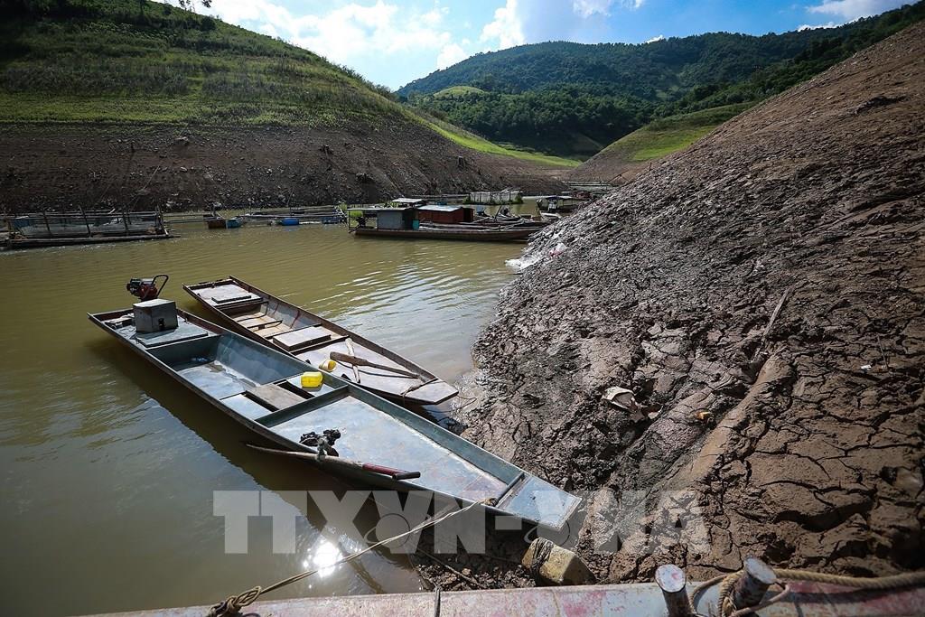 Trong nhiều năm qua hồ Hòa Bình đang đối mặt với nguy cơ sụt giảm lượng nước nghiêm trọng làm ảnh hưởng trực tiếp đến hệ sinh thái tự nhiên và đời sống kinh tế của người dân tại các xã ven hồ. Ảnh: Trọng Đạt-TTXVN