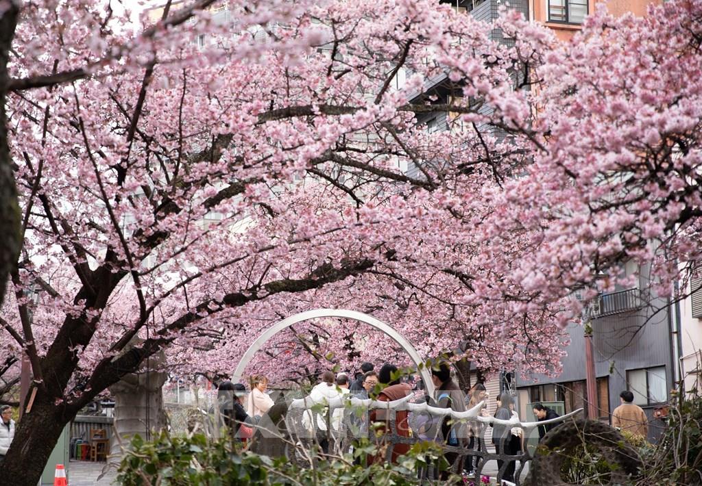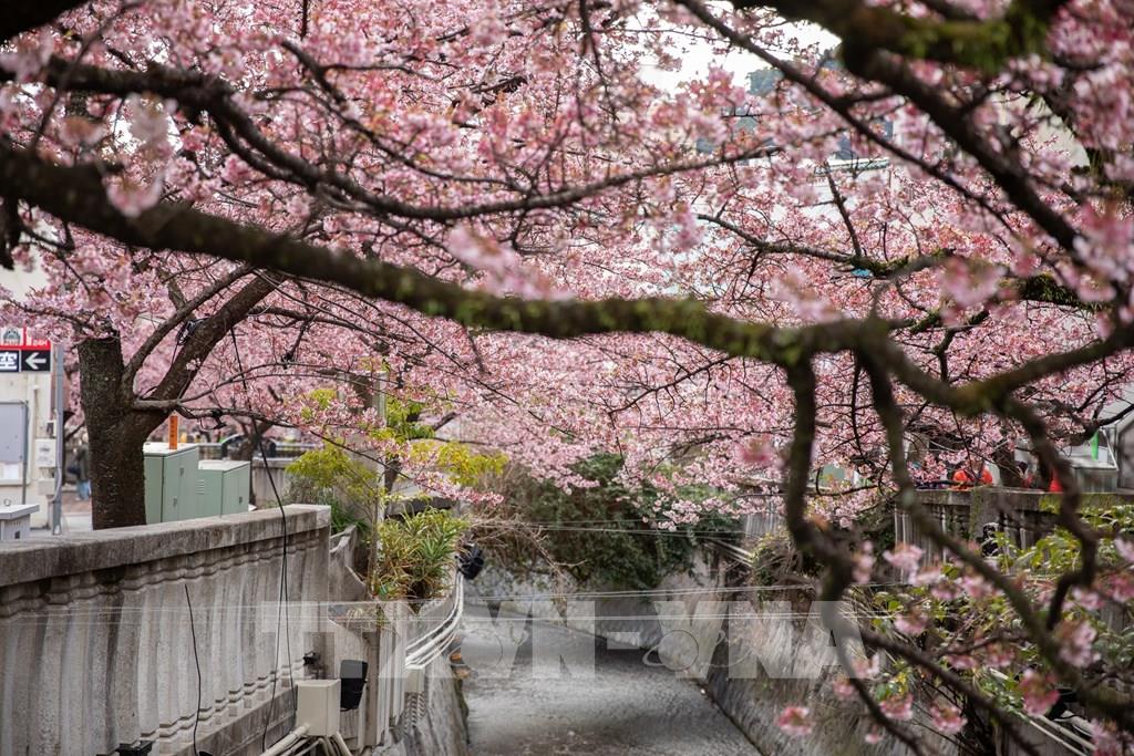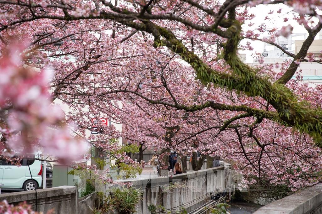 Hoa anh đào nở rộ hai bên bờ sông Itokawa, thành phố Atami, Shizuoka, Nhật Bản. Ảnh: Xuân Giao – PV TTXVN