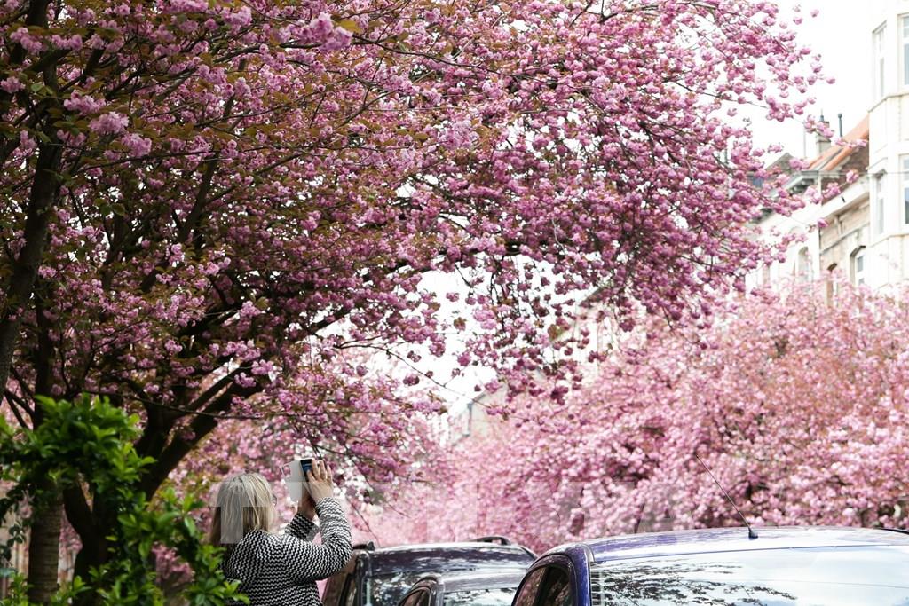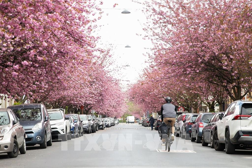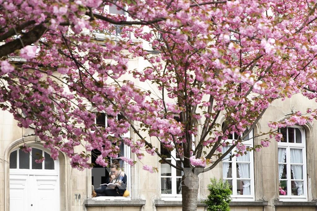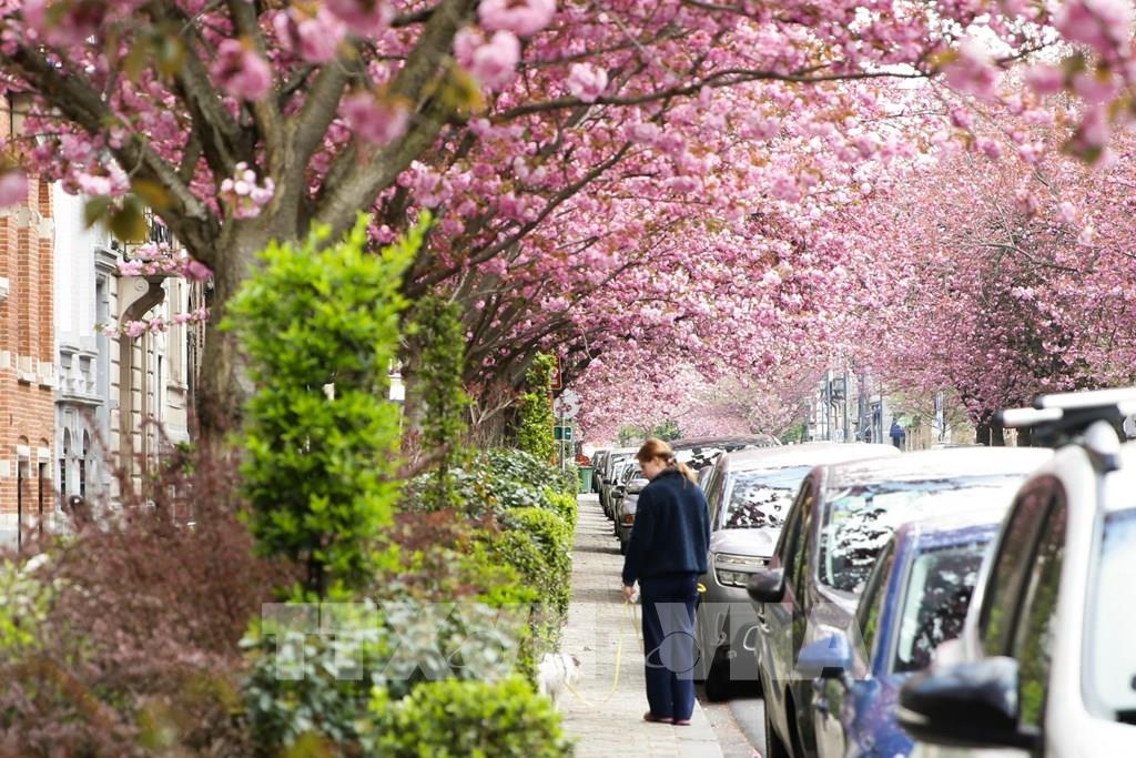 Hoa anh đào đua nhau khoe sắc trên đường phố Brussels, Bỉ, tạo nên bức tranh tuyệt đẹp của mùa xuân.