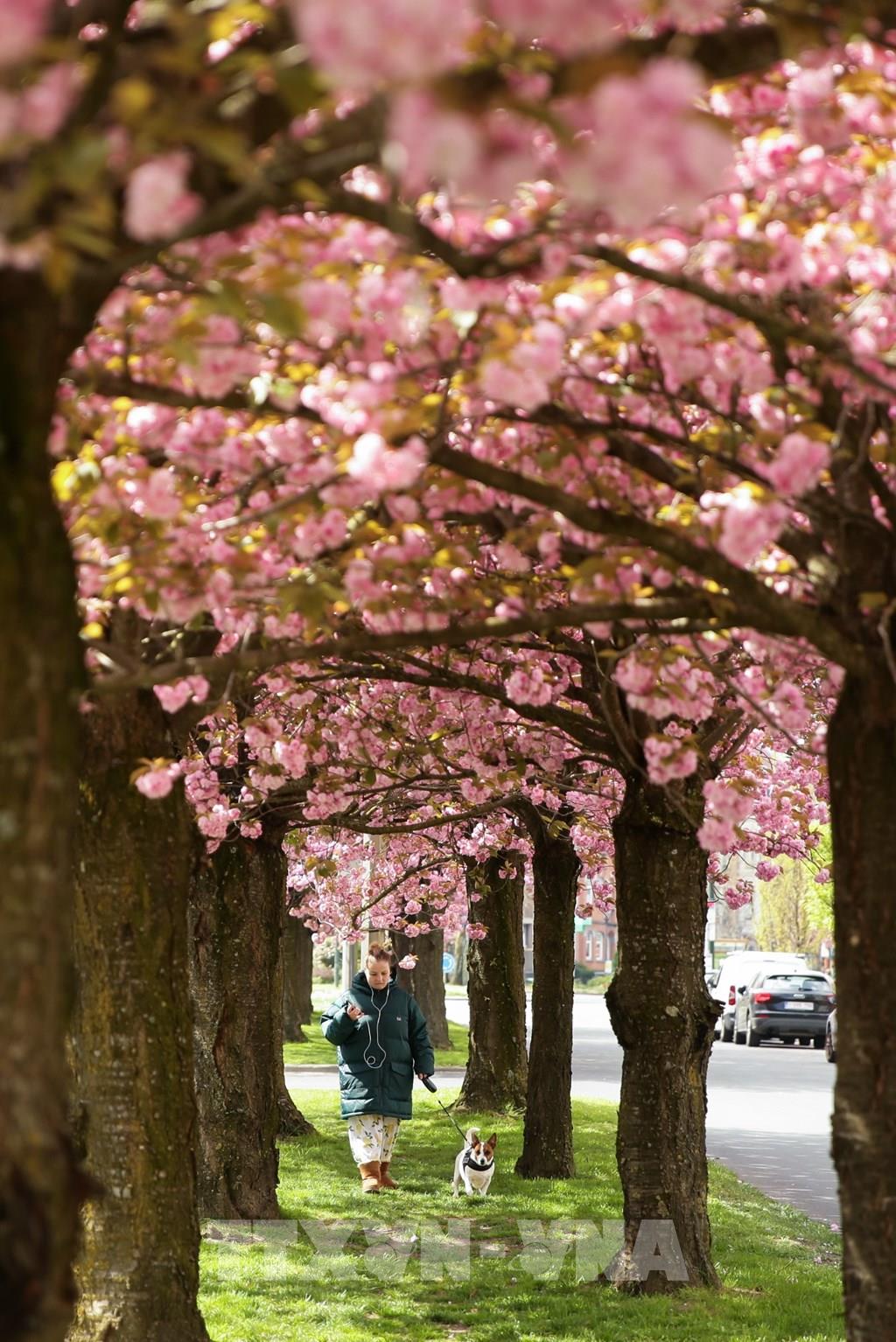 09:14' - 20/04/2023Hoa anh đào đua nhau khoe sắc trên đường phố Brussels, Bỉ, tạo nên bức tranh tuyệt đẹp của mùa xuân.