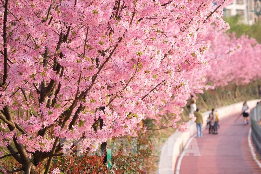 Hoa anh đào nở rộ tại Phúc Châu, tỉnh Phúc Kiến, Trung Quốc. Ảnh: THX/ TTXVN