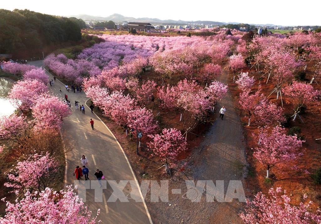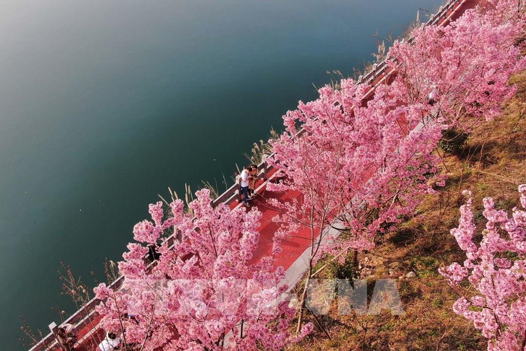 Hoa anh đào nở rộ tại tỉnh Quý Châu, Trung Quốc, ngày 22/2/2021. Ảnh: THX/ TTXVN