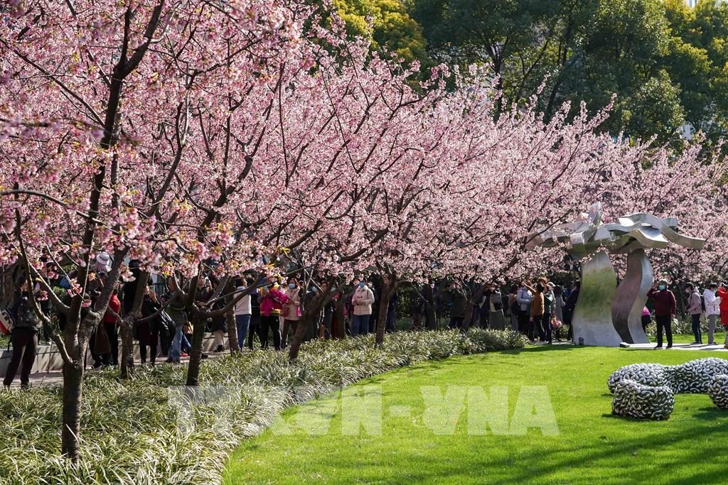 Hoa anh đào nở rộ trong công viên tại Thượng Hải, Trung Quốc, ngày 2/3/2021. Ảnh: THX/ TTXVN