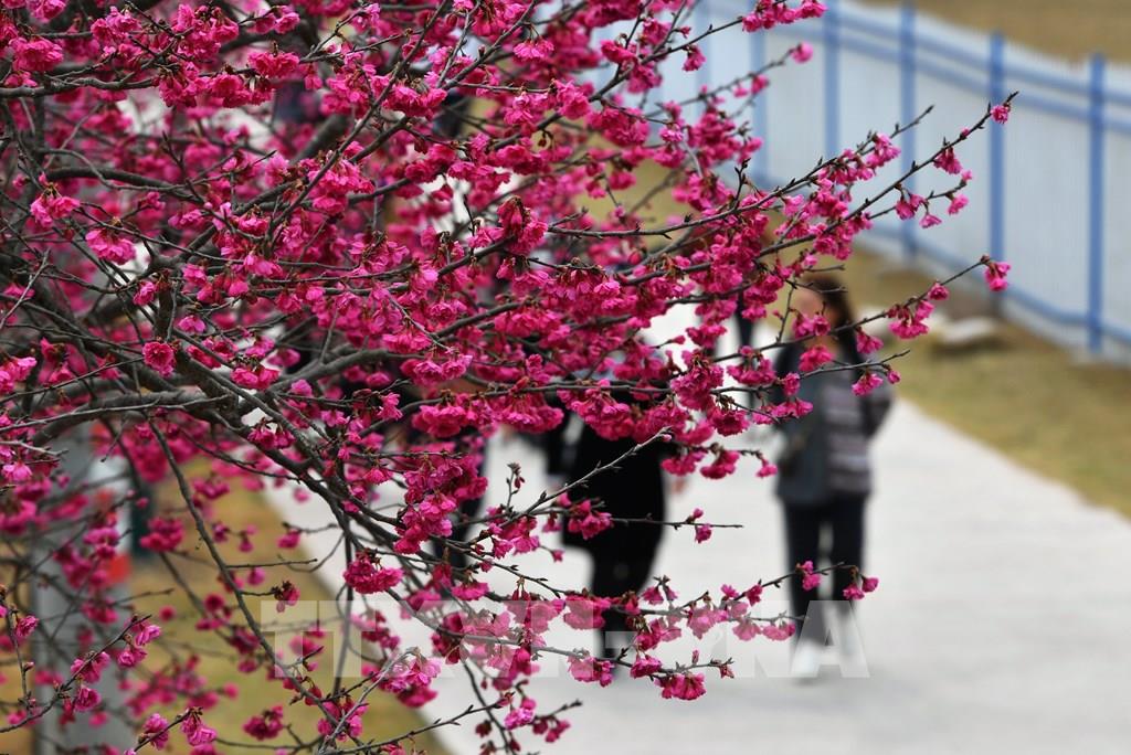 Hoa anh đào nở rộ trong công viên tại Vũ Hán, tỉnh Hồ Bắc, Trung Quốc, ngày 27/2/2021. Ảnh: THX/ TTXVN