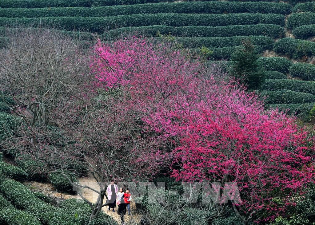 Hoa anh đào nở rộ tại Chương Bình, tỉnh Phúc Kiến, đông nam Trung Quốc, ngày 8/2/2021. Ảnh: THX/ TTXVN