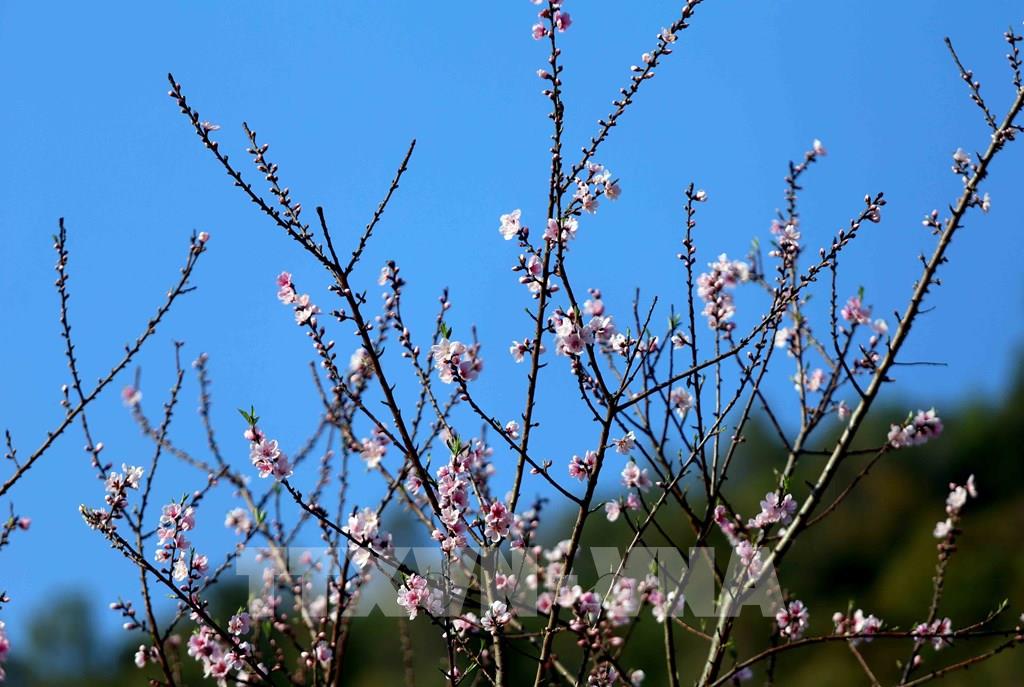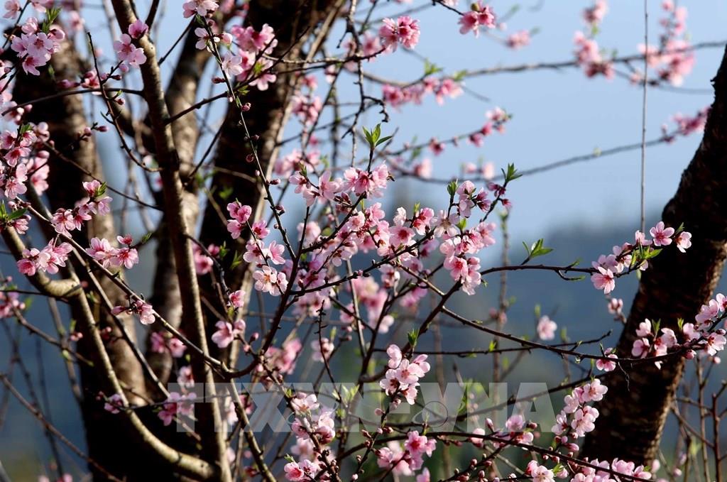 Những cành hoa đào vươn cao nở rộ. Ảnh: Quý Trung – TTXVN