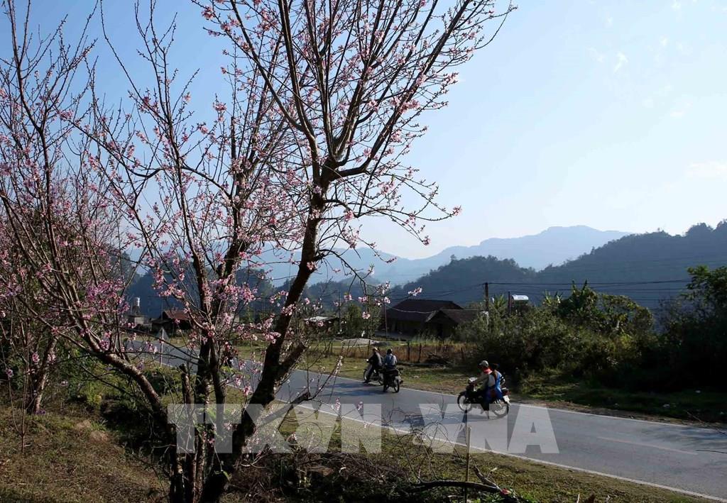 Có những đoạn đường Hoa đào chiếm màu sắc chủ đạo. Ảnh: Quý Trung - TTXVN