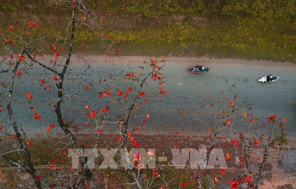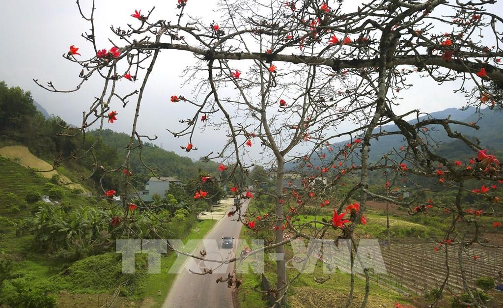 Hoa gạo đỏ rực trên những con đường tại Hòa Bình