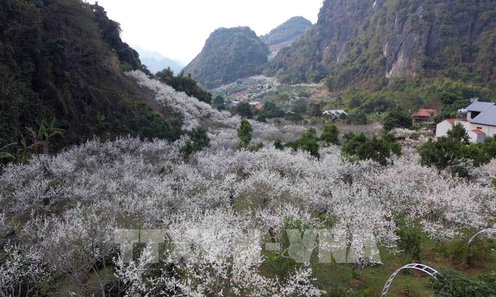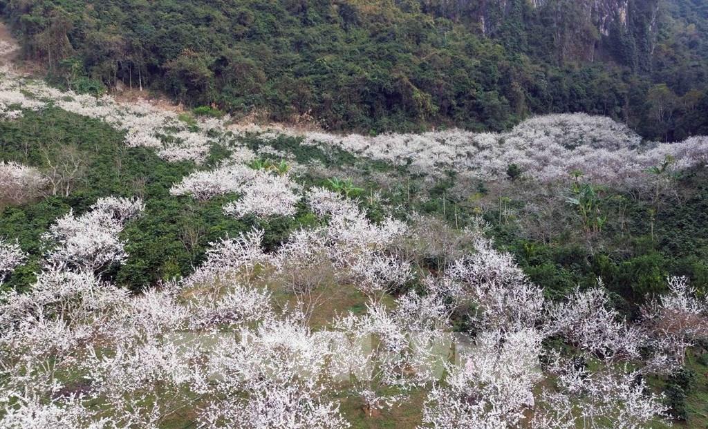 Trên địa bàn huyện Mộc Châu, hoa mận nở đẹp ở nhiều khu vực như thung lũng Nà Ka, Mu Náu, bản Pa Phách và các tiểu khu 84, 86, Cờ Đỏ, khu vực rừng thông bản Áng...Ảnh: Quang Quyết – TTXVN