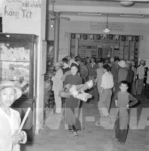 Cửa hàng mậu dịch phục vụ Tết Bính Thân 1956 tại Hà Nội. Ảnh: TTXVN