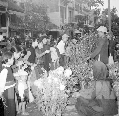 Người dân Thủ đô đi chợ hoa Hàng Lược. Ảnh: TTXVN