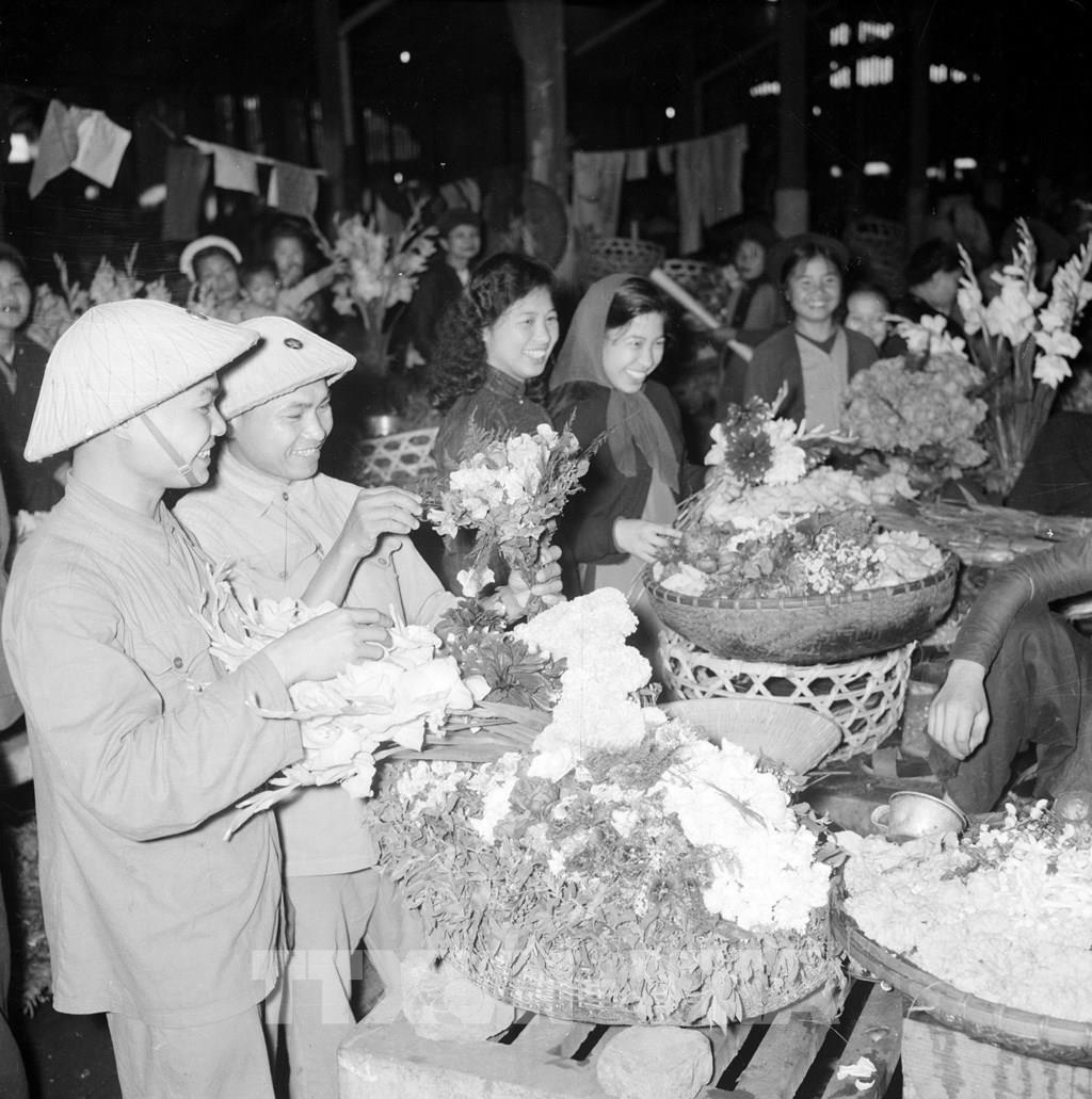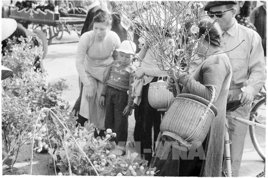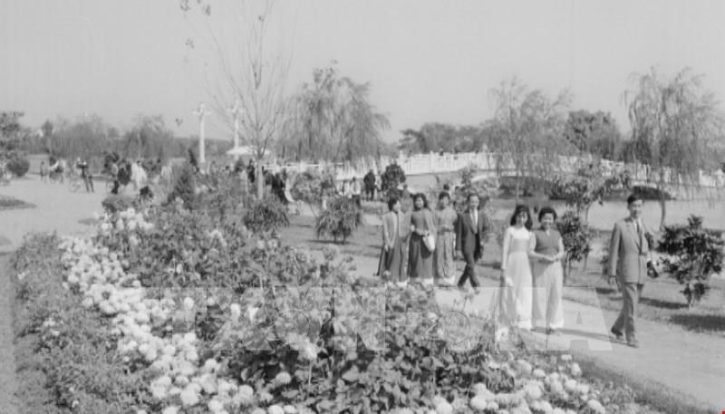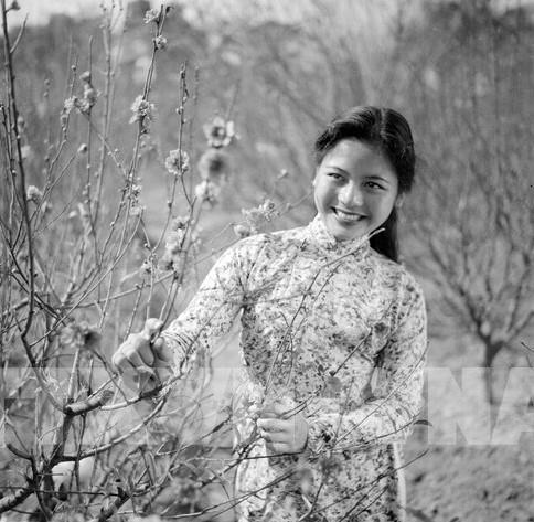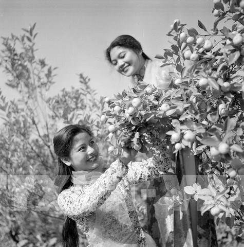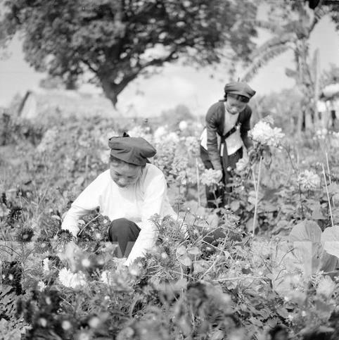 Cô gái Hà Nội tại làng hoa Nhật Tân, năm 1963. Ảnh: TTXVN
