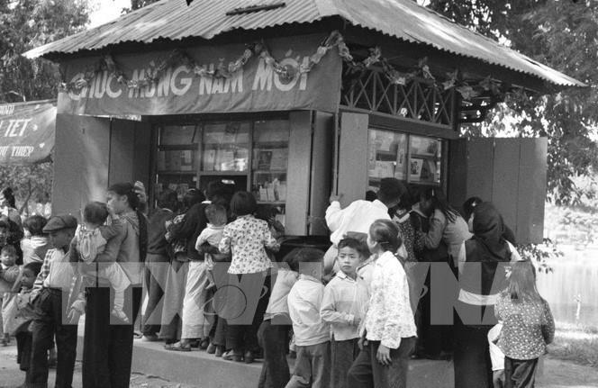 Cửa hàng sách, báo, tranh ảnh tại Công viên Bách Thảo phục vụ thiếu niên trong dịp Tết. Ảnh: TTXVN