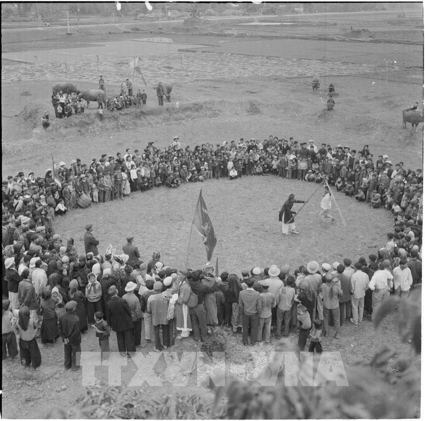 Người dân tập trung chơi các trò chơi dân gian ngày Tết. Ảnh: TTXVN