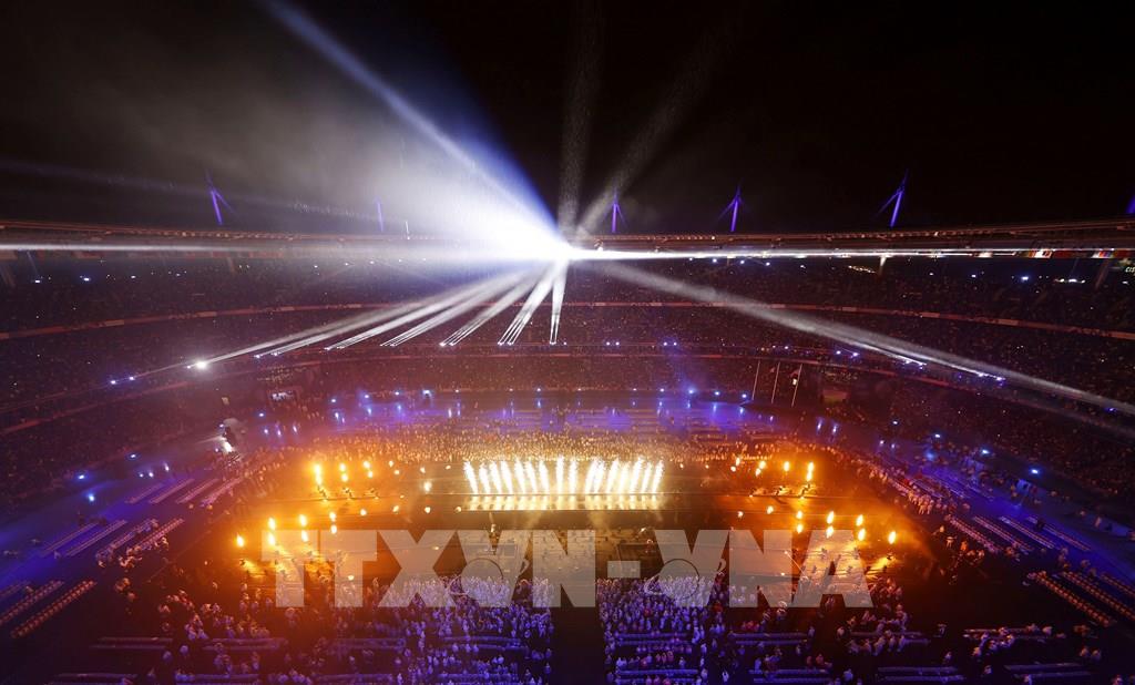 Lễ bế mạc Thế vận hội Paralympic Paris 2024 diễn ra tại Paris (Pháp), trong điều kiện thời tiết mưa nặng hạt nhưng không làm cho không khí trên sân vận động Stade de France giảm bớt đi sự hoành tráng. Ảnh: Kyodo/TTXVN