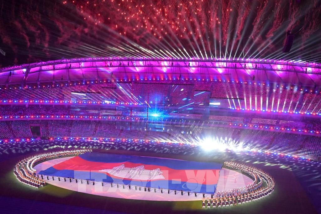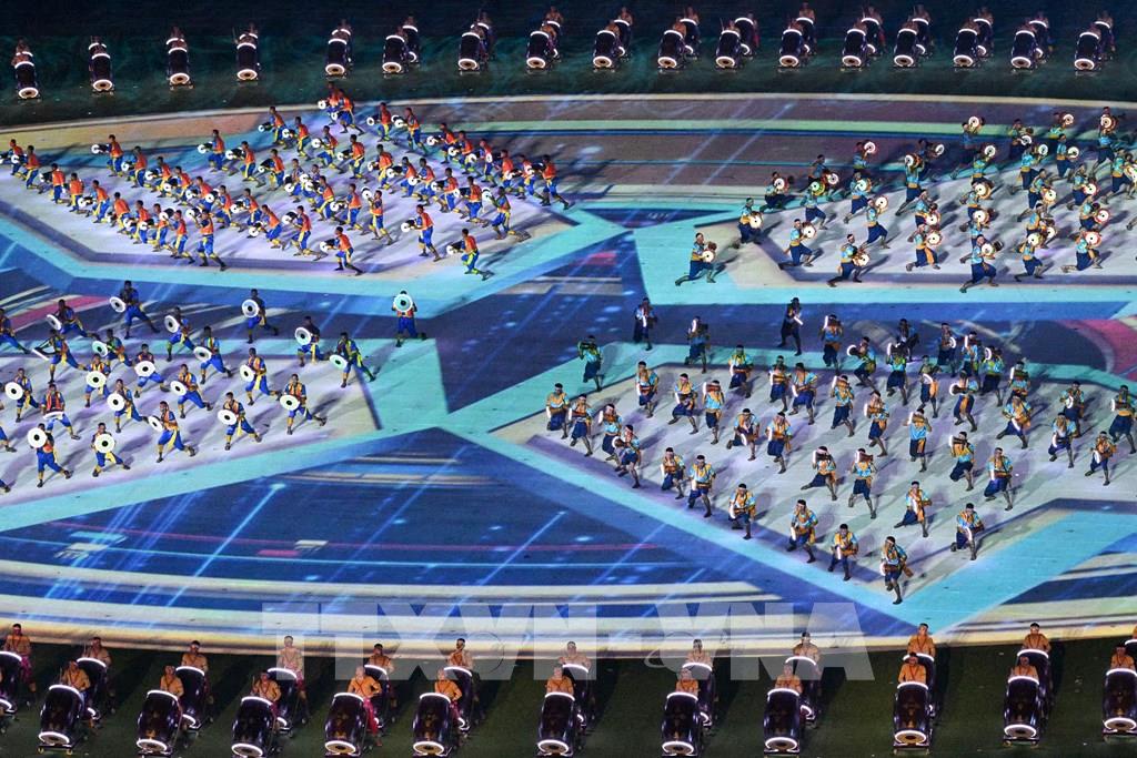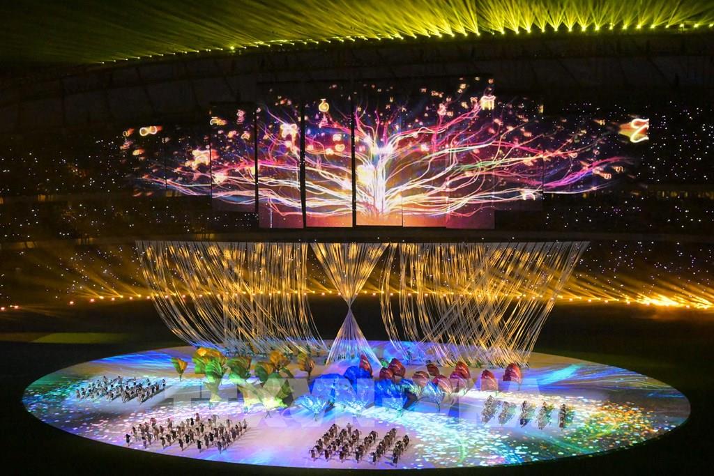 Màn biểu diễn nghệ thuật đặc sắc tại Lễ khai mạc SEA Games 32. Ảnh: AFP/TTXVN