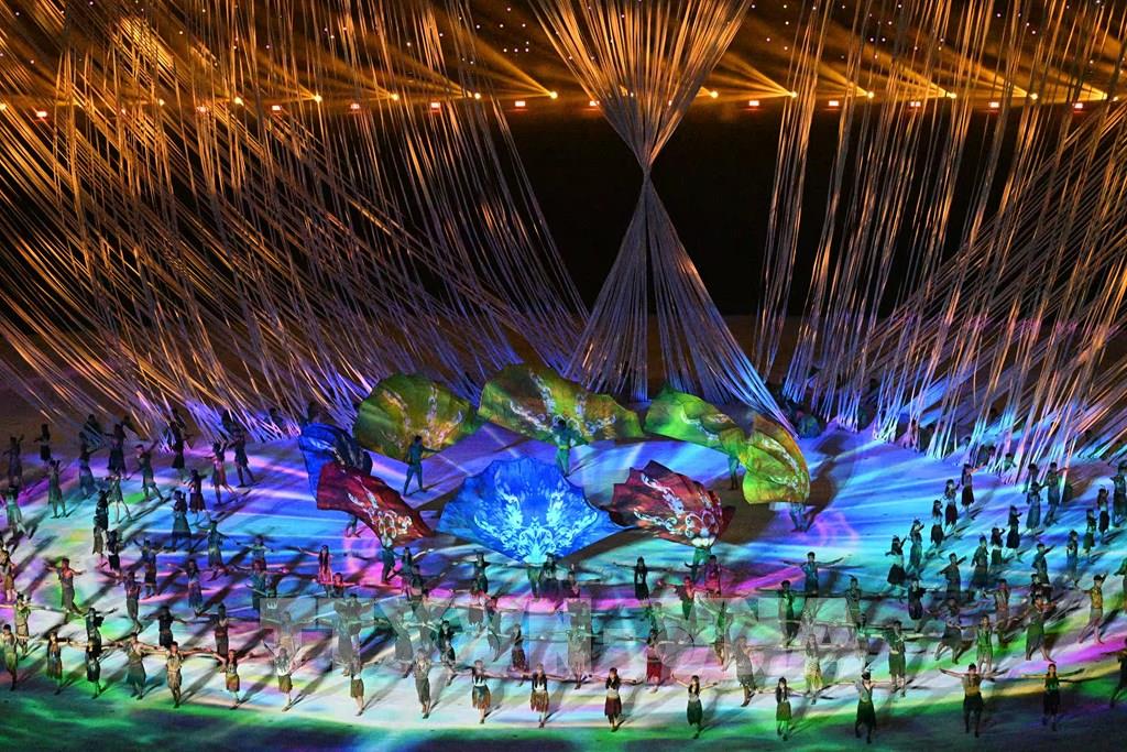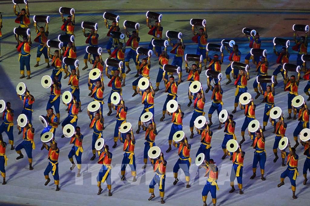 Các nghệ sĩ biểu diễn tại Lễ khai mạc SEA Games 32. Ảnh: AFP/TTXVN