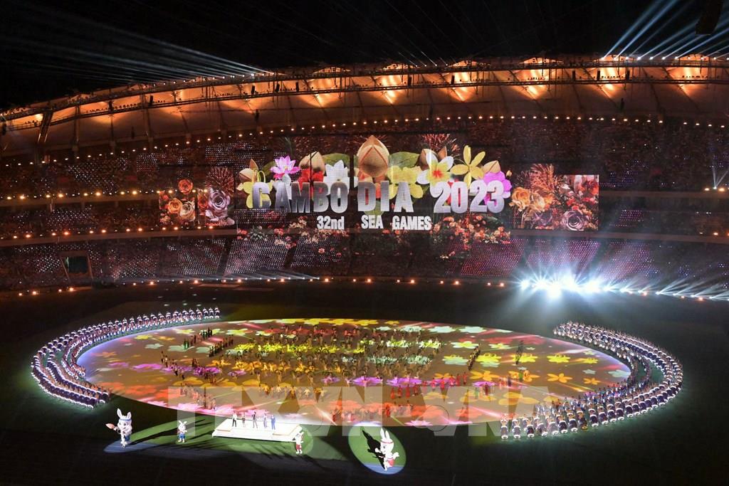 Màn biểu diễn nghệ thuật tại Lễ khai mạc SEA Games 32 trên sân vận động Morodok Techo ở thủ đô Phnom Penh, Campuchia ngày 5/5/2023. Ảnh: AFP/TTXVN