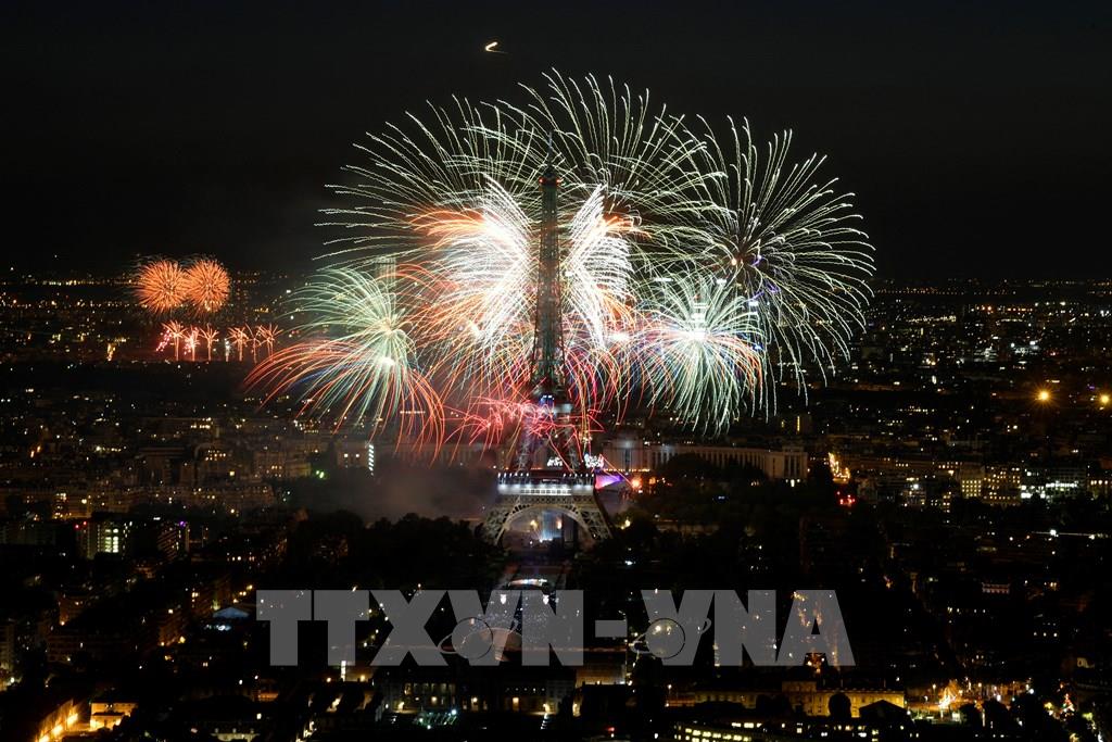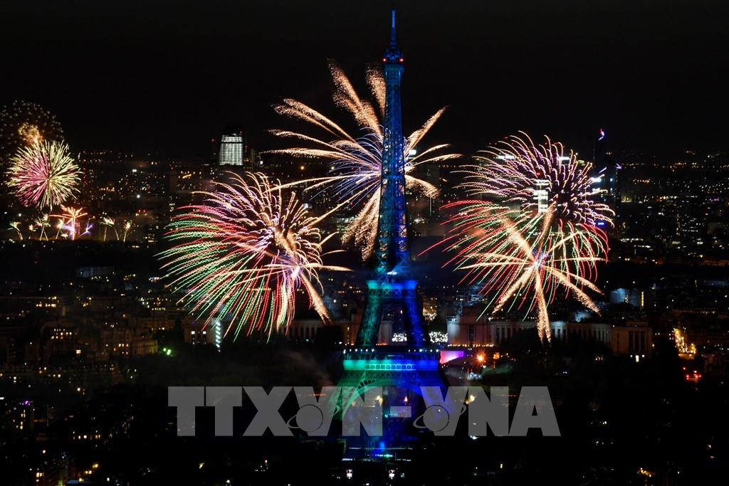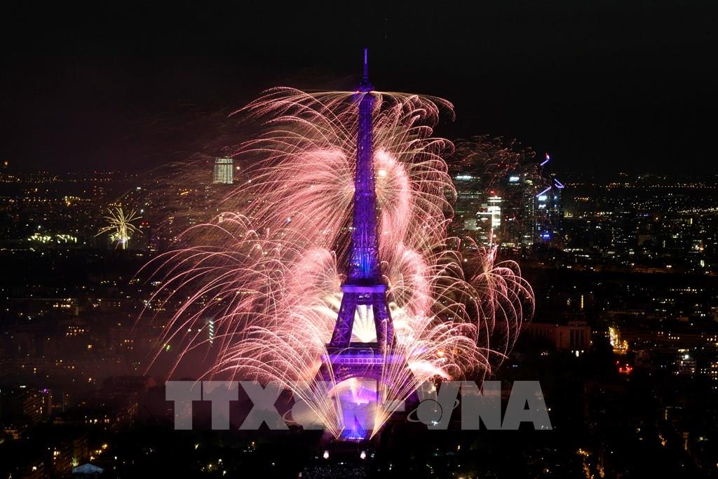 Màn pháo hoa rực rỡ kỷ niệm ngày Quốc khánh Pháp tại thủ đô Paris, ngày 14/7/2022. Ảnh: THX/TTXVN