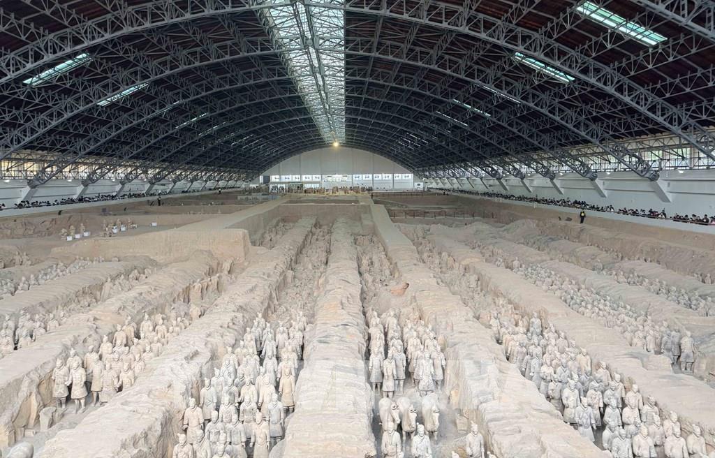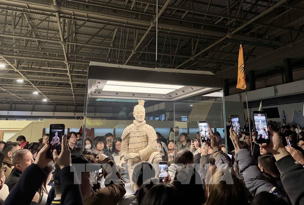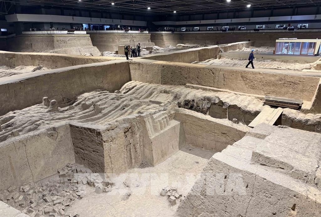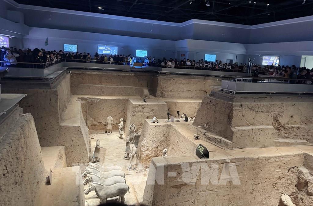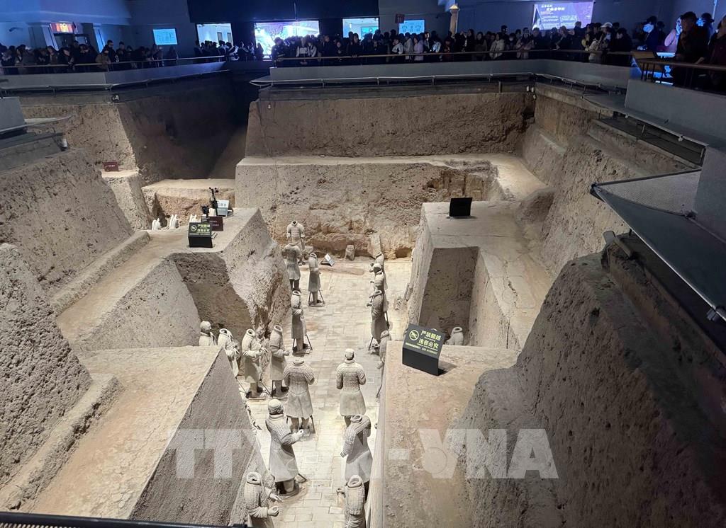 Khu hầm mộ số 1 có diện tích khoảng 14.260 m2, đây là chiến trường chính, chứa khoảng 6.000 chiến binh đất nung, ngựa và xe ngựa, thể hiện cảnh tượng ngoạn mục của bộ binh và xe ngựa chiến đấu cùng nhau. Ảnh: Công Tuyên-PV TTXVN