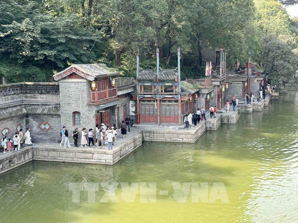 Nằm trong khuôn viên của Di Hoà viên - Phố Tô Châu là gian hàng truyền thống được bố trí nằm ven sông, xây dựng theo lối kiến trúc cổ điển của kênh Giang Tô. Xưa kia, nơi đây là chốn Vua và các phi tần thường ghé đến để đóng vai dân thường, mua sắm… Ảnh: Công Tuyên-P/v TTXVN