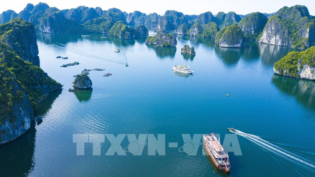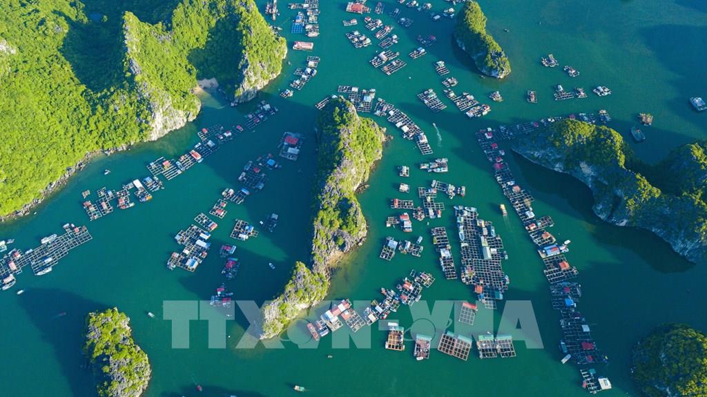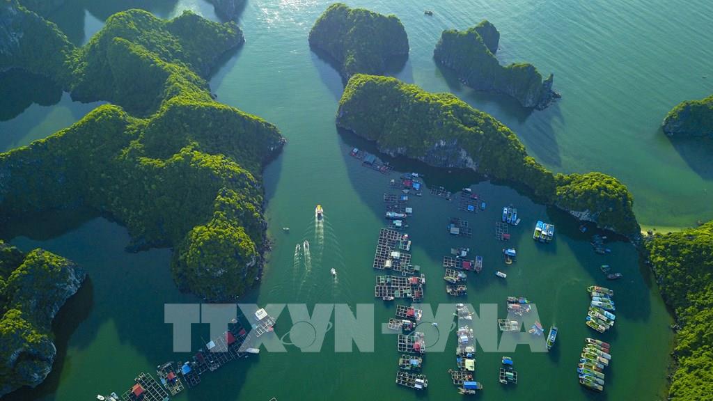 Vẻ đẹp vịnh Lan Hạ nhìn từ trên cao. Ảnh: Minh Đức - TTXVN