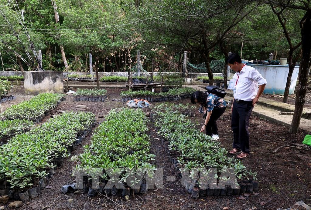 Vườn ươm các giống cây trồng thuộc hệ sinh thái rừng ngập mặn Cần Giờ trong khuôn viên Ban quản lý rừng phòng hộ Cần Giờ. Ảnh: Hồng Đạt - TTXVN