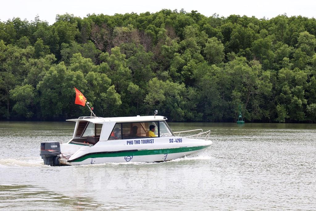 Cano chở khách tham quan đi trong rừng ngập mặn Cần Giờ. Ảnh: Hồng Đạt - TTXVN