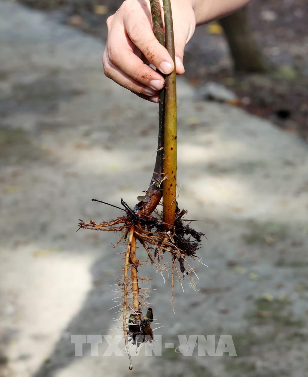 Rễ của cây đước con. Ảnh: Huyền Trinh - TTXVN