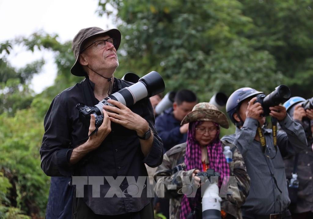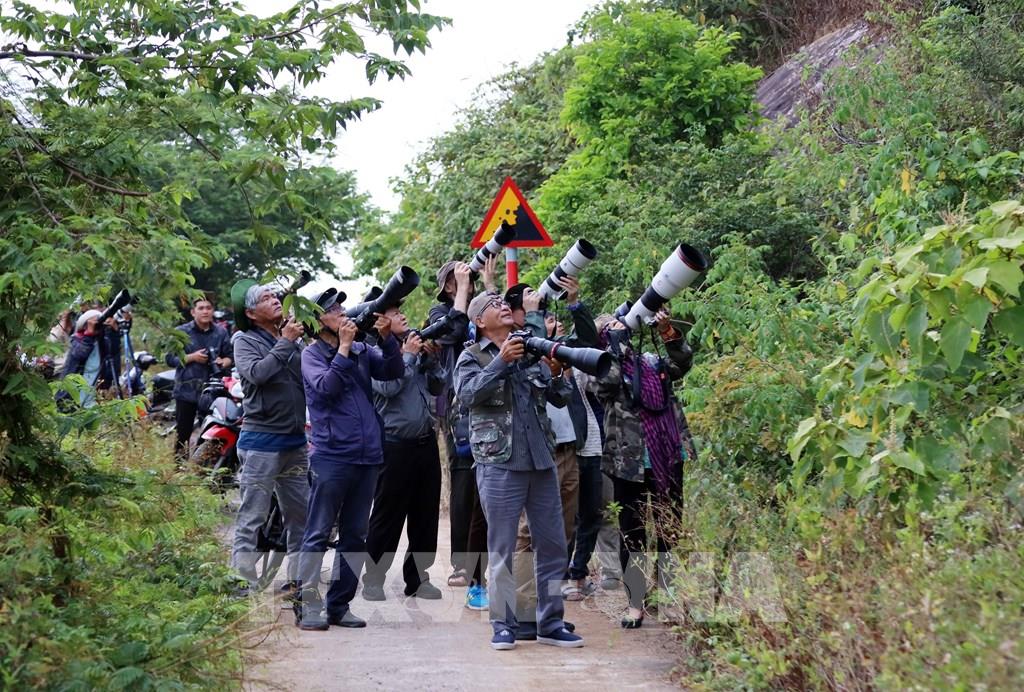 Đông đảo người dân, du khách và những nhà nghiên cứu, nhiếp ảnh gia đến đây để được chiêm ngưỡng vẻ đẹp của loại hoa thàn mát. Ảnh: Trần Lê Lâm – TTXVN
