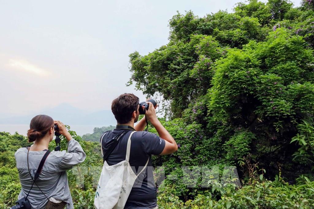 Một nhiếp ảnh gia nước ngoài đến Sơn Trà để được chiêm ngưỡng, chụp lại vẻ đẹp của loài hoa thàn mát. Ảnh: Trần Lê Lâm – TTXVN