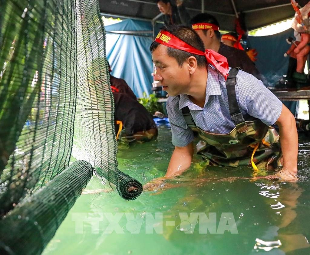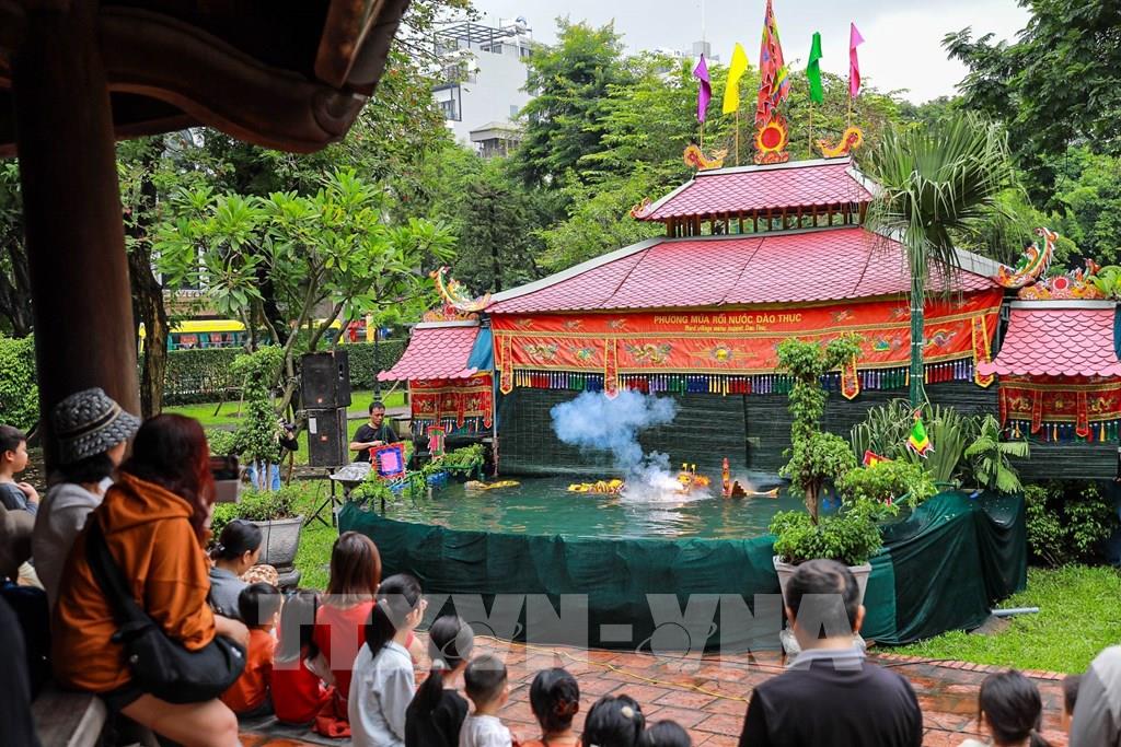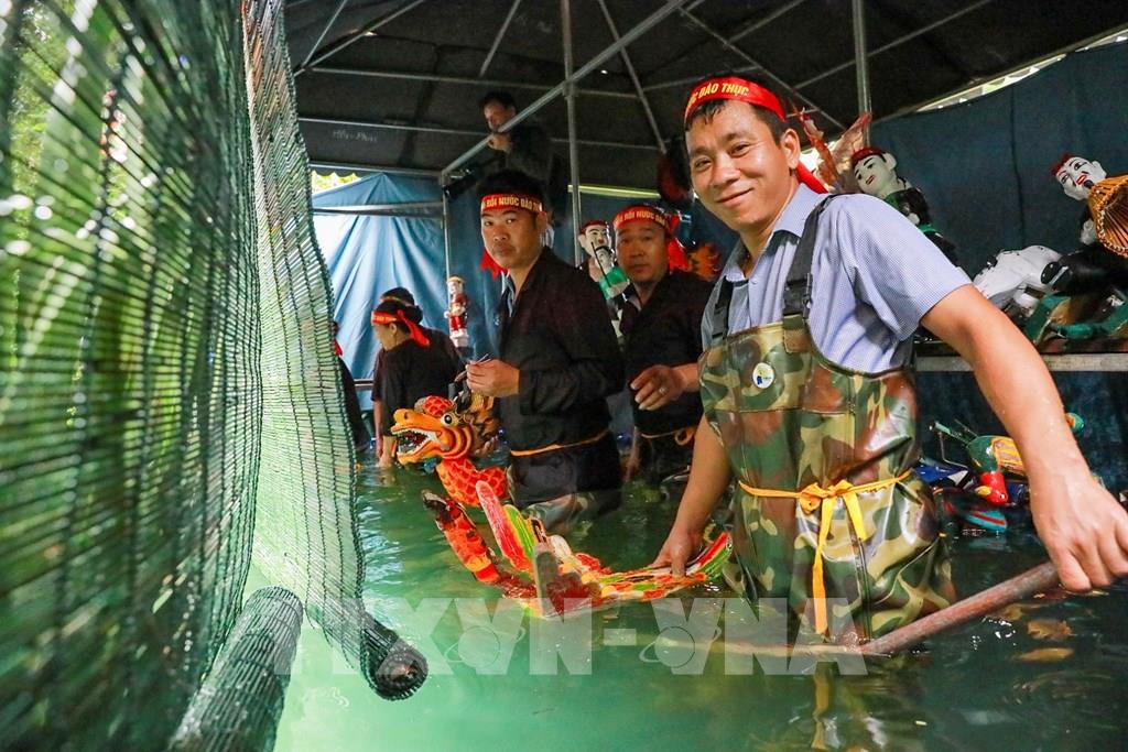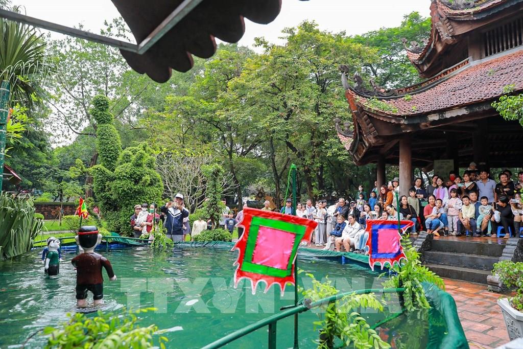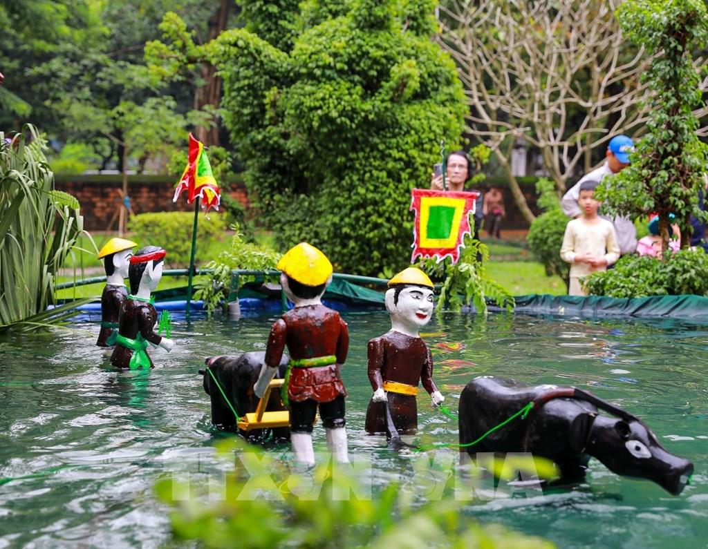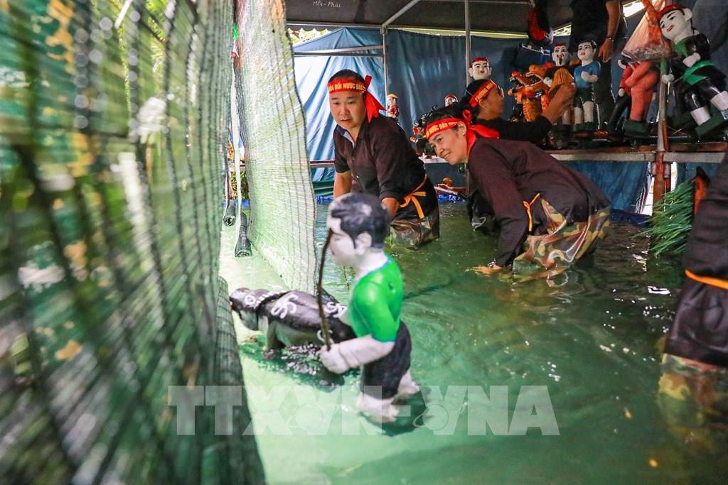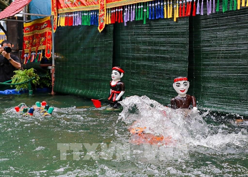 Múa rối nước - nghệ thuật sân khấu dân gian nhận được sự quan tâm và yêu thích của nhiều người dân và du khách trong, ngoài nước. Ảnh: Khánh Hoà - TTXVN