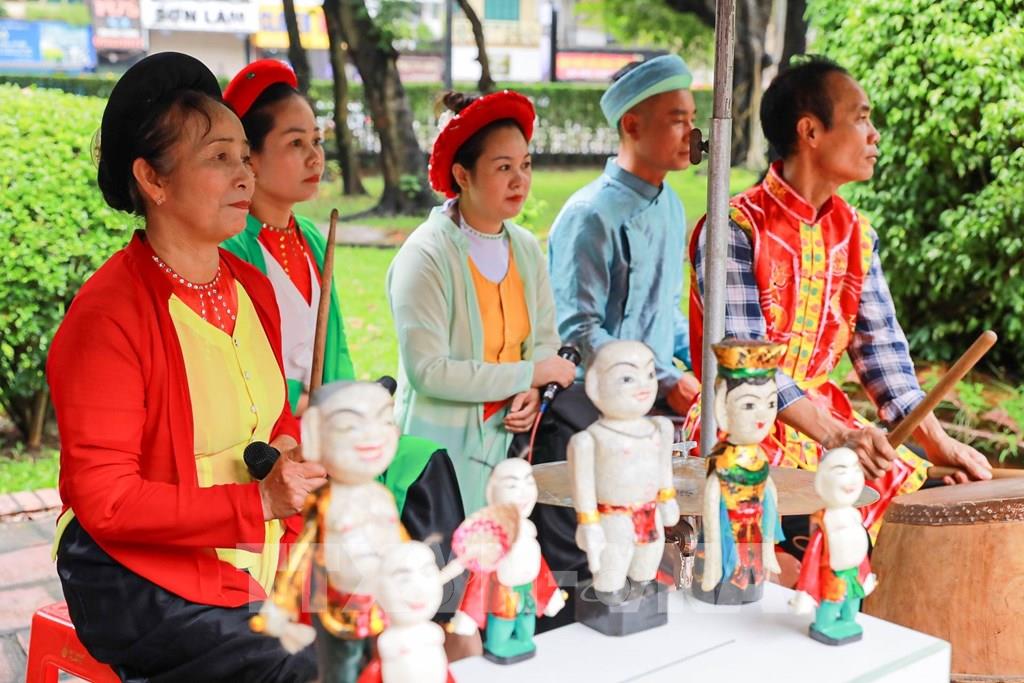 Múa rối nước thường đi kèm với âm nhạc dân tộc (như chèo, tuồng) do dàn nhạc sống biểu diễn, góp phần dẫn dắt câu chuyện và tạo không khí cho buổi diễn. Ảnh: Khánh Hoà - TTXVN