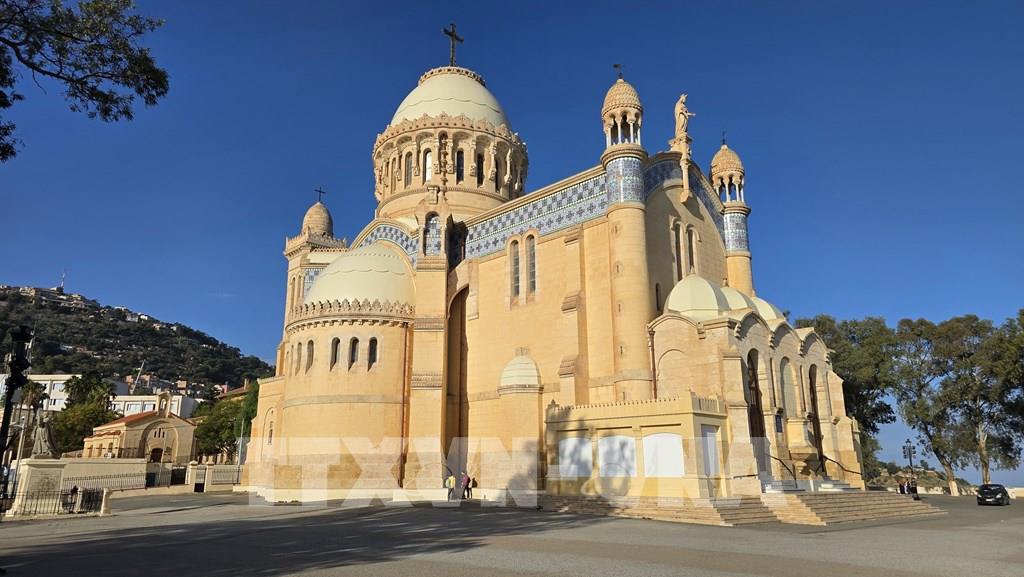 08:49' - 24/11/2025Nhà thờ Đức Bà châu Phi được xây dựng từ 1858–1872 theo phong cách La Mã–Byzantin. Công trình khởi nguồn từ lòng sùng kính Đức Mẹ của hai phụ nữ Lyon, Marguerite Berger và Anne Cinquin, từng đặt tượng Đức Mẹ trong thân cây ôliu ở Bouzaréah. Nhà thờ nổi bật với mái vòm bạc, nội thất khảm gốm và dòng chữ ba ngôn ngữ: “Notre-Dame d’Afrique, priez pour nous et pour les musulmans” (Đức mẹ châu Phi hãy chúc phúc cho chúng con và những người Hồi giáo).