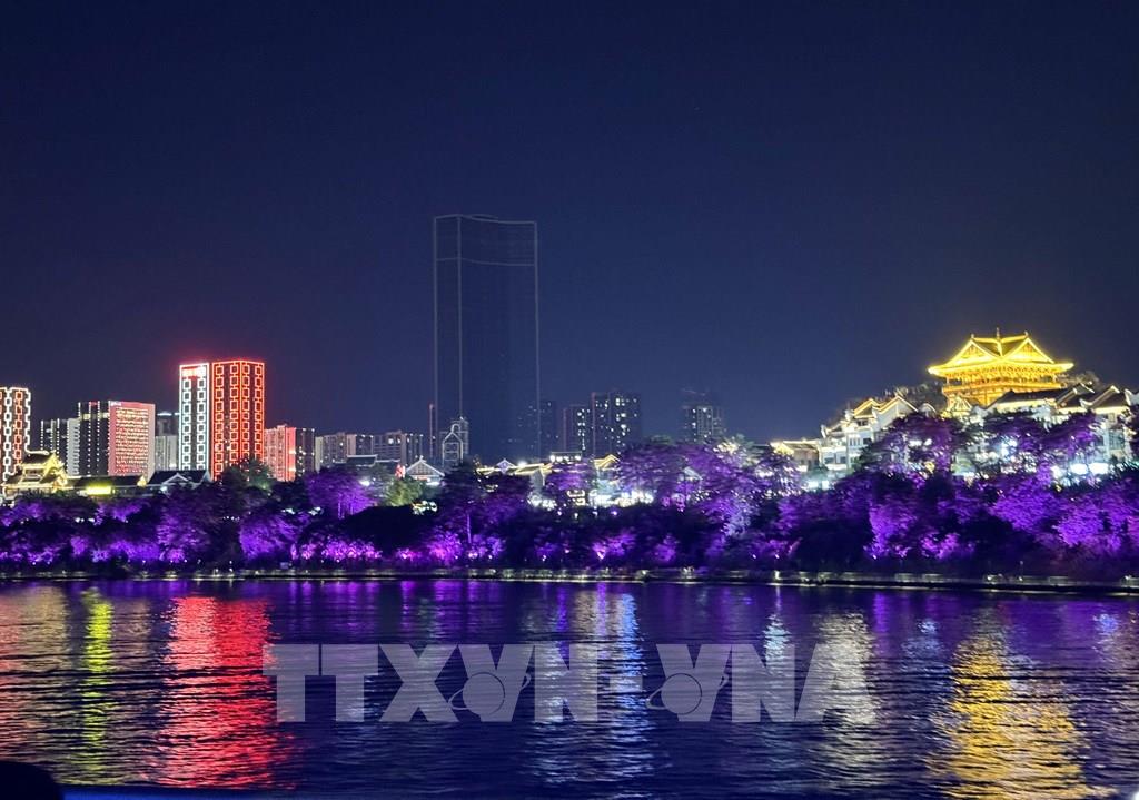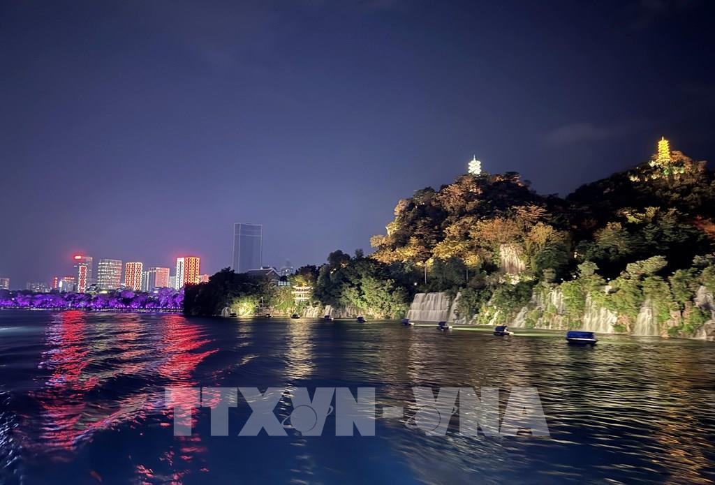 08:28' - 05/09/2025Cảnh đêm trên sông Liễu Giang (hay sông Lưu Giang) ở Liễu Châu, Quảng Tây (Trung Quốc) là sự kết hợp giữa vẻ đẹp hiện đại của thành phố về đêm và nét thơ mộng của dòng sông, nơi du khách có thể ngắm nhìn sự lung linh của ánh đèn, các cây cầu và những tòa nhà dọc hai bên bờ, tạo nên một không gian vừa cổ kính vừa sôi động.