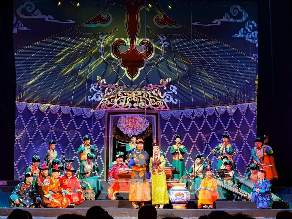 Các nghệ sĩ Nhà hát Kịch Hàn lâm Quốc gia Mông Cổ trong một buổi biểu diễn phục vụ du khách. Ảnh: Thanh Tùng - TTXVN