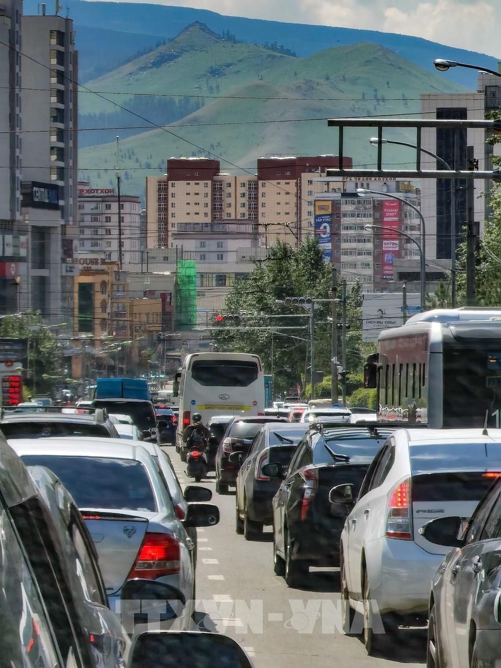 Giao thông trong thành phố Ulan Bator chủ yếu là phương tiện ô tô, xe buýt. Ảnh: Thanh Tùng – TTXVN
