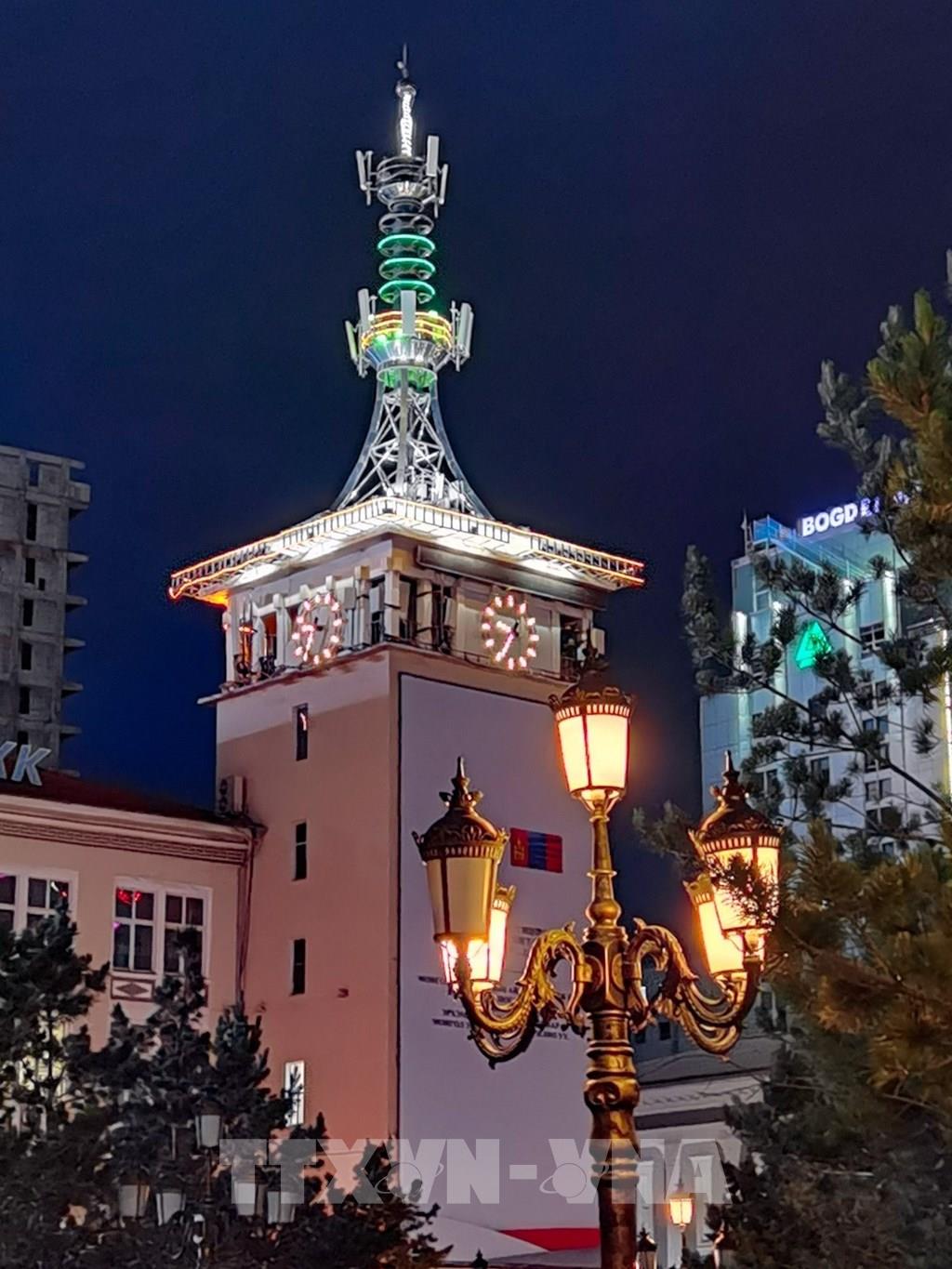Tháp đồng hồ trung tâm ở thủ đô Ulan Bator (Mông Cổ). Ảnh: Thanh Tùng – TTXVN