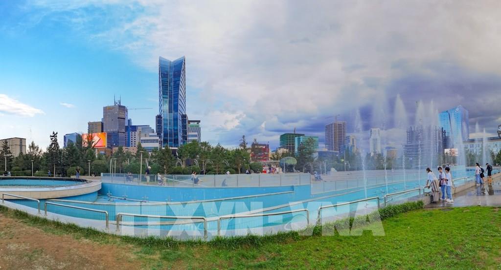 Không gian xanh mát của hồ phun nước bên Quảng trường Sukhbator. Ảnh: Thanh Tùng – TTXVN