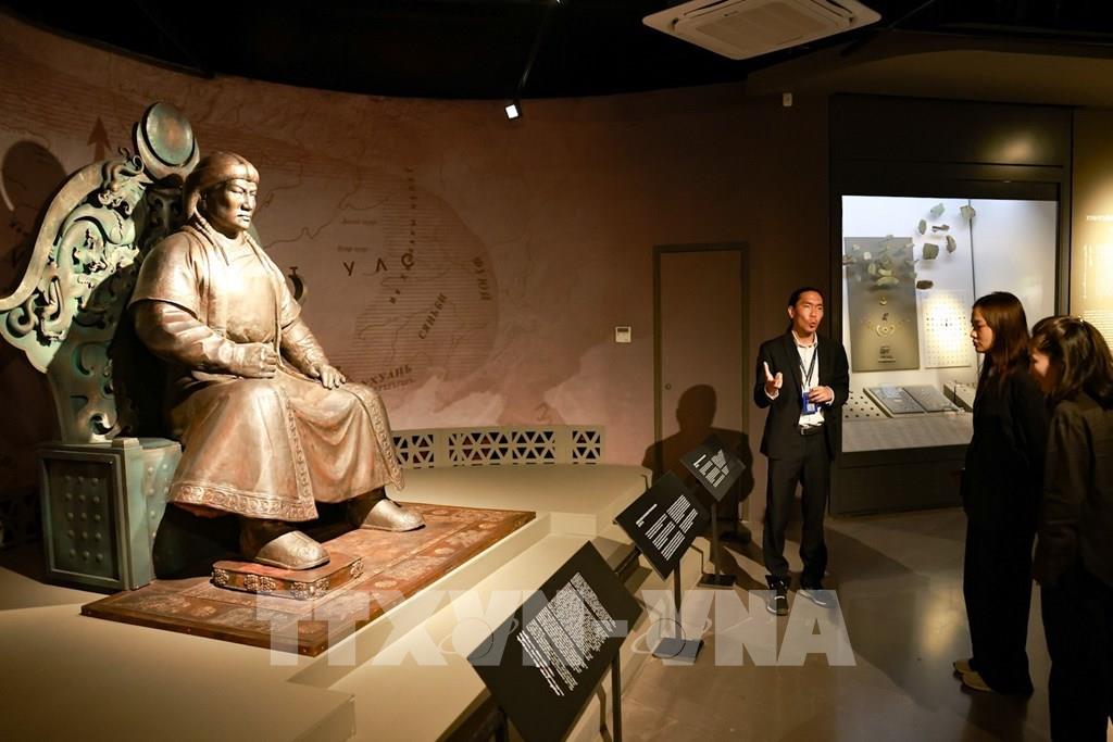 Khách tham quan bảo tàng Chinggis Khan, bảo tàng dành riêng cho cuộc đời và di sản của Thành Cát Tư Hãn, trưng bày hơn 10.000 hiện vật, với hơn 85% là các hiện vật gốc. Ảnh: Thanh Tùng – TTXVN