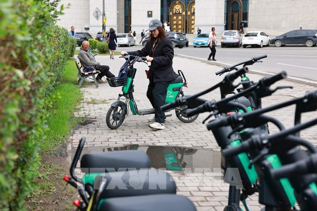 Xe điện công cộng dành cho cá nhân được để ở nhiều góc phố, người dân và du khách có thể sử dụng theo hướng dẫn qua ứng dụng trên điện thoại. Ảnh: Thanh Tùng – TTXVN
