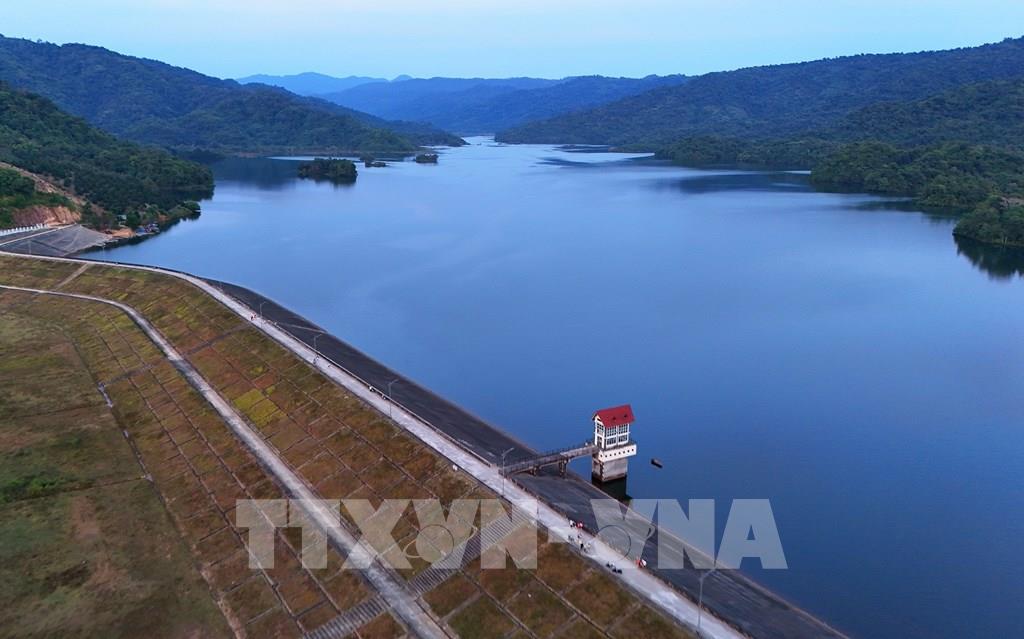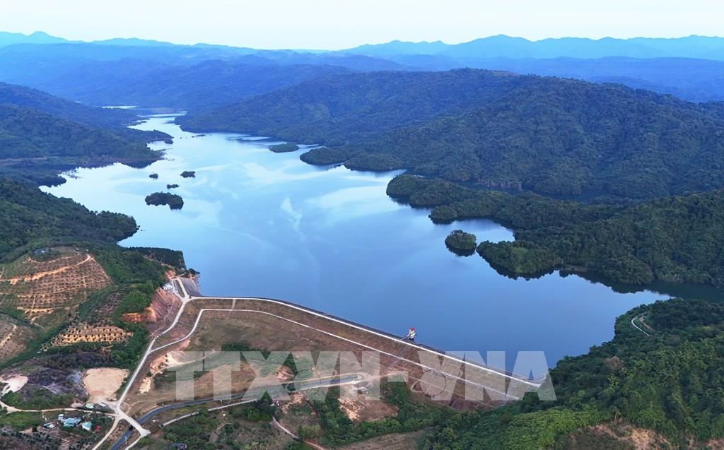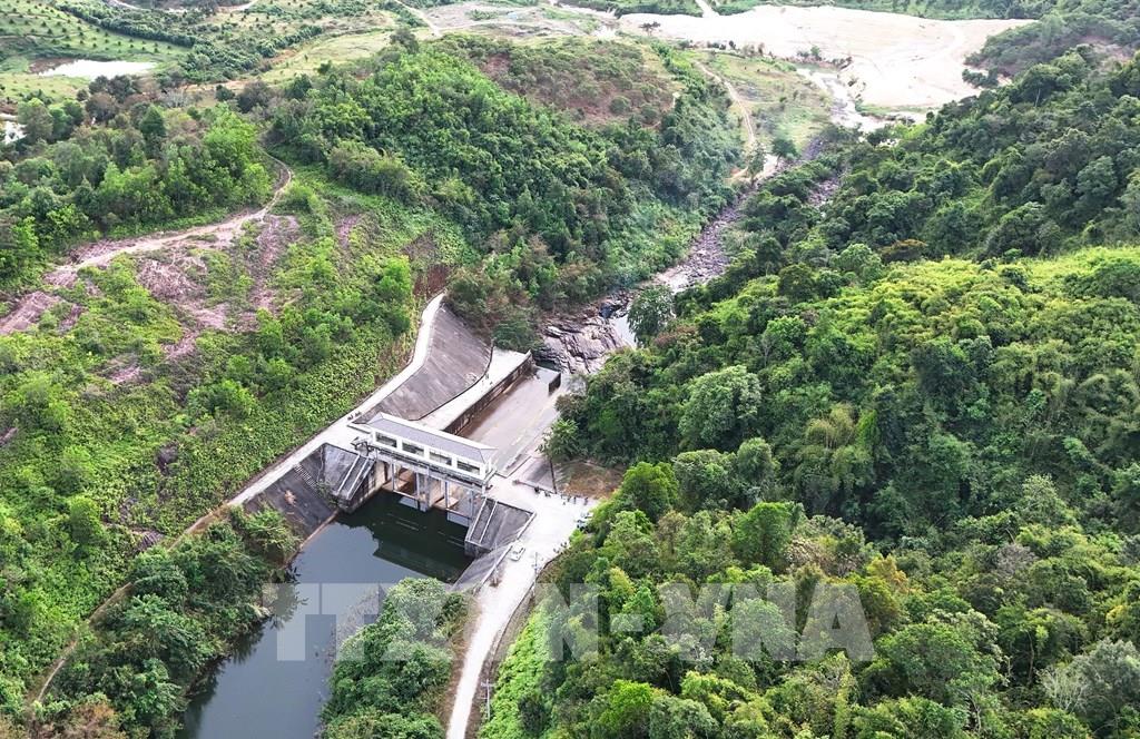 Đập tràn xả lũ để điều tiết mực nước vào mùa mưa của hồ Đạ Tẻh. Ảnh: Hồng Đạt - TTXVN