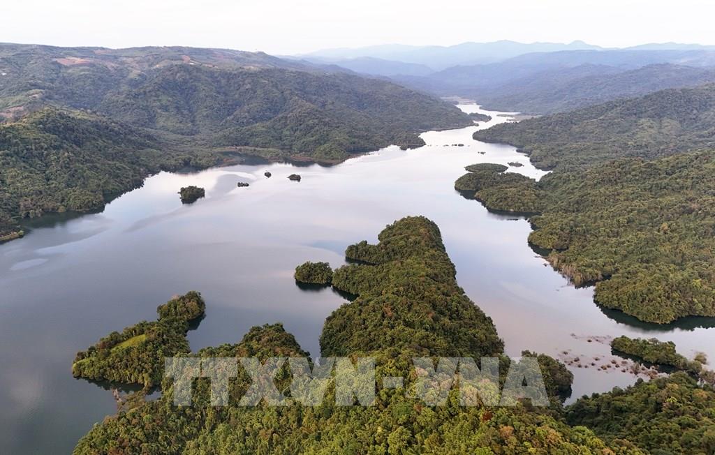 Hồ Đạ Tẻh được hình thành do việc xây dựng đập thuỷ lợi chắn ngang lòng sông, đây là một trong những công trình thuỷ lợi lớn nhất của tỉnh Lâm Đồng, vùng đầu nguồn là khu vực bảo tồn thiên nhiên với hệ sinh thái rừng mưa nhiệt đới. Ảnh: Hồng Đạt - TTXVN