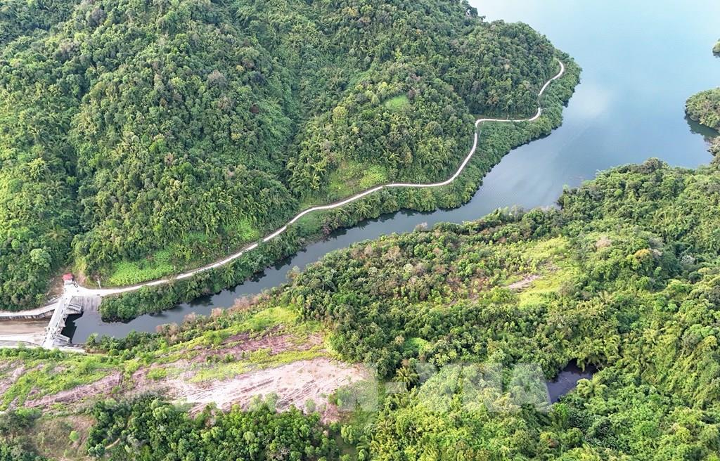 Con đường vào đập tràn hồ Đạ Tẻh cho khách tham quan. Ảnh: Hồng Đạt - TTXVN
