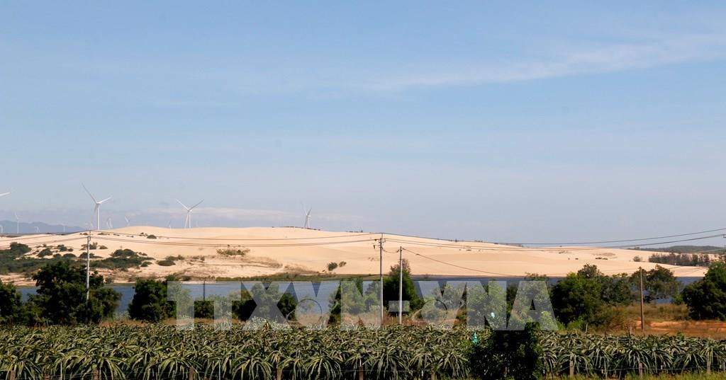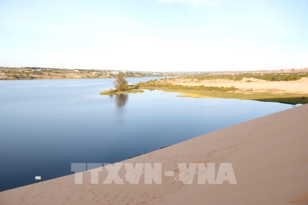 Thắng cảnh Bàu Trắng với đồi cát cao vút kề bên hai hồ nước ngọt, tạo nên bức tranh thiên nhiên tuyệt đẹp và vô cùng độc đáo. Ảnh: Nguyễn Thanh - TTXVN
